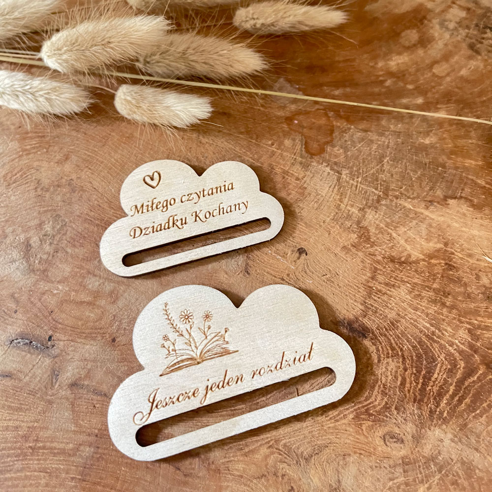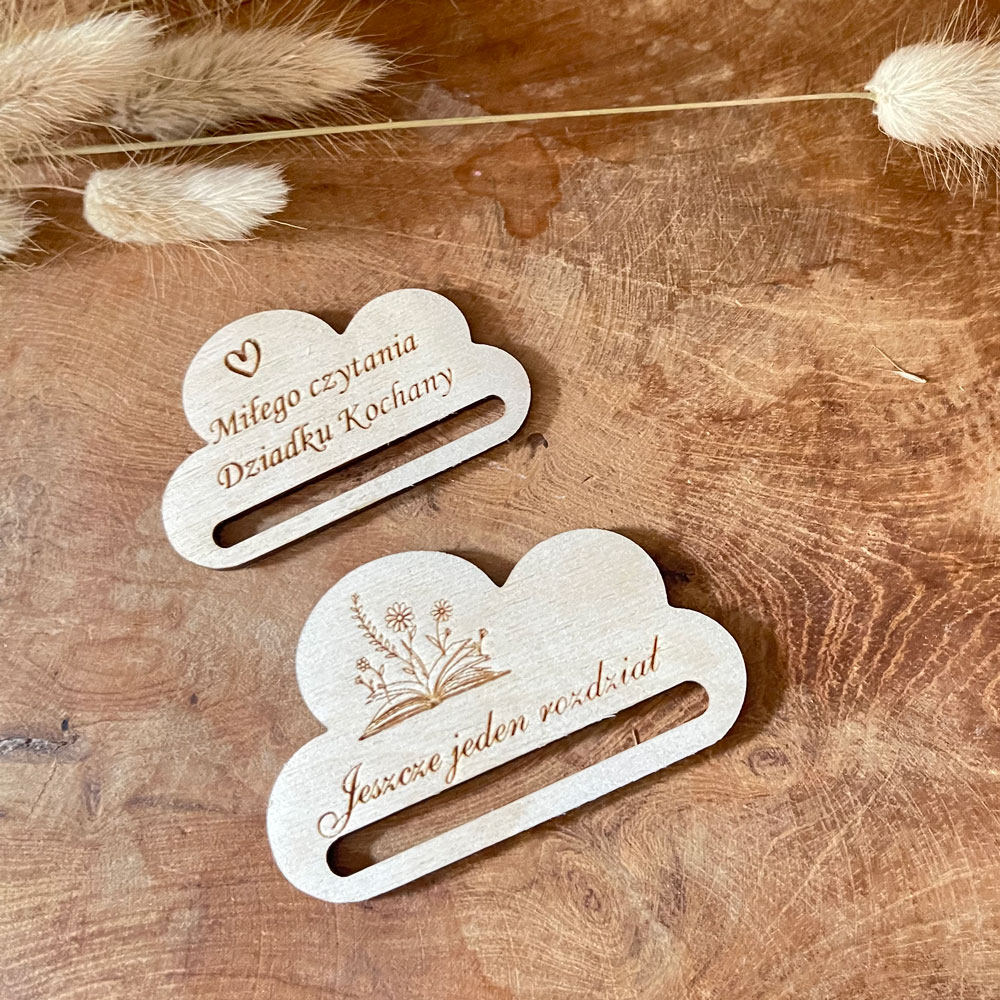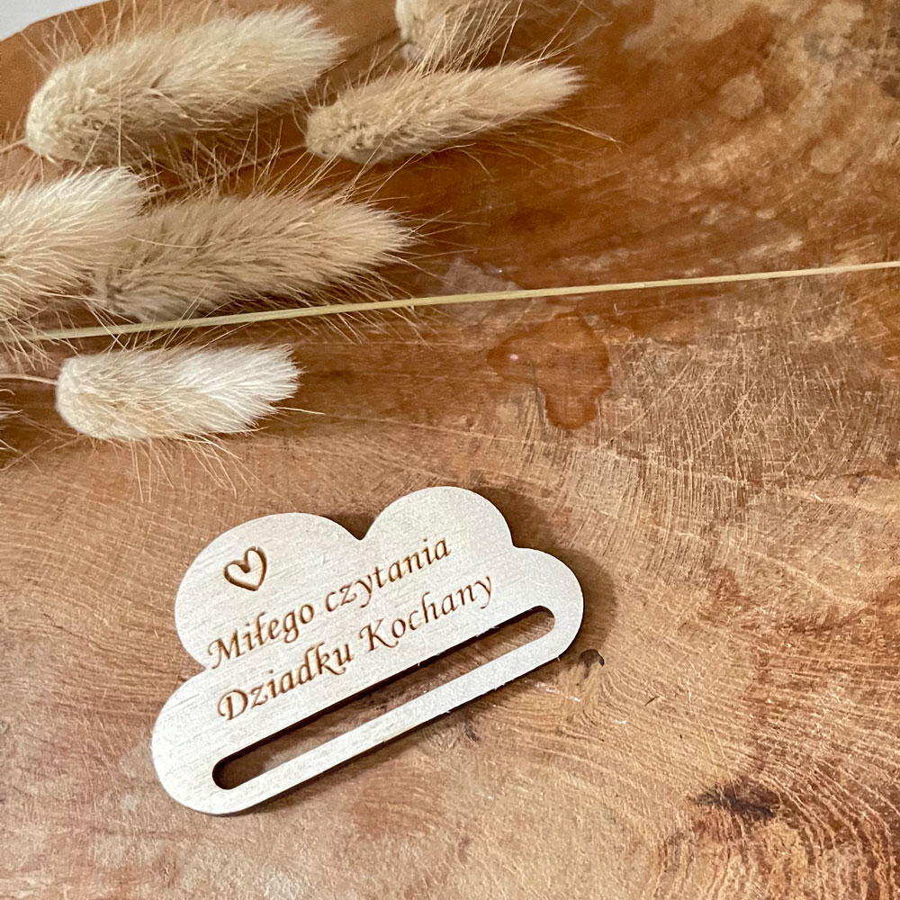 DREWNIANA BAZA DO ZAKŁADKI Z DWUSTRONNYM GRAWEREM – CHMURKA