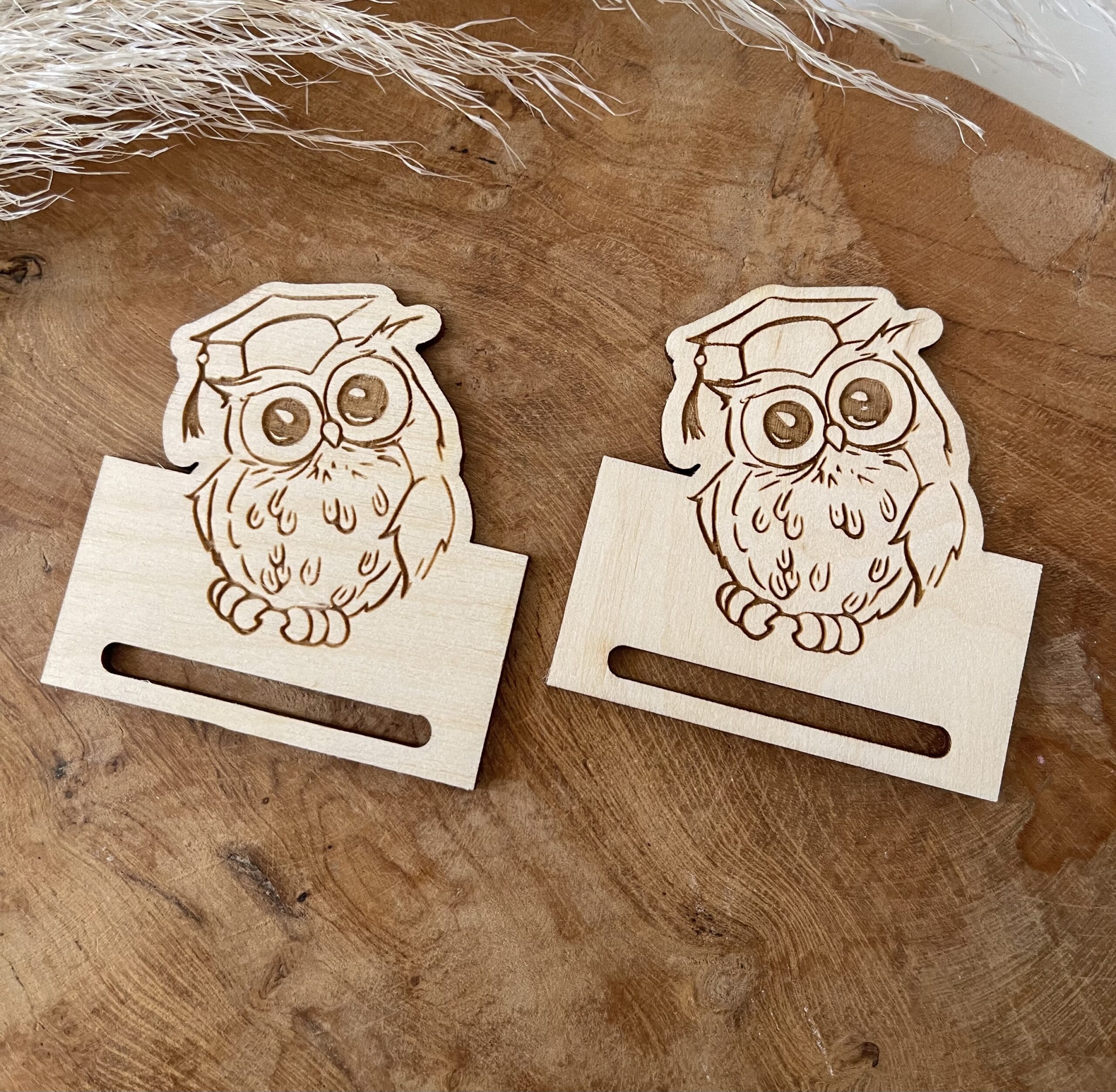 DREWNIANA BAZA DO ZAKŁADKI Z JEDNOSTRONNYM GRAWEREM – SOWA