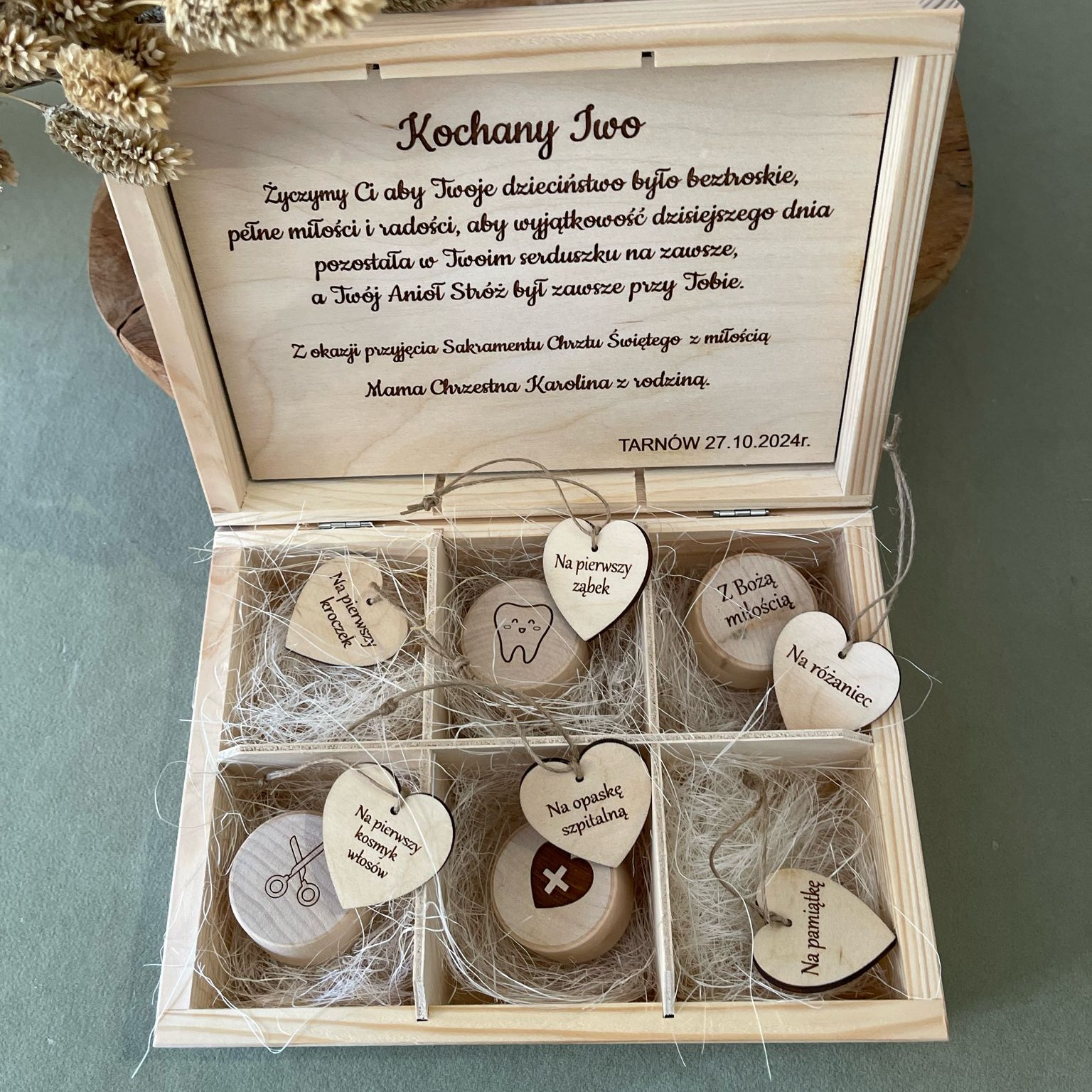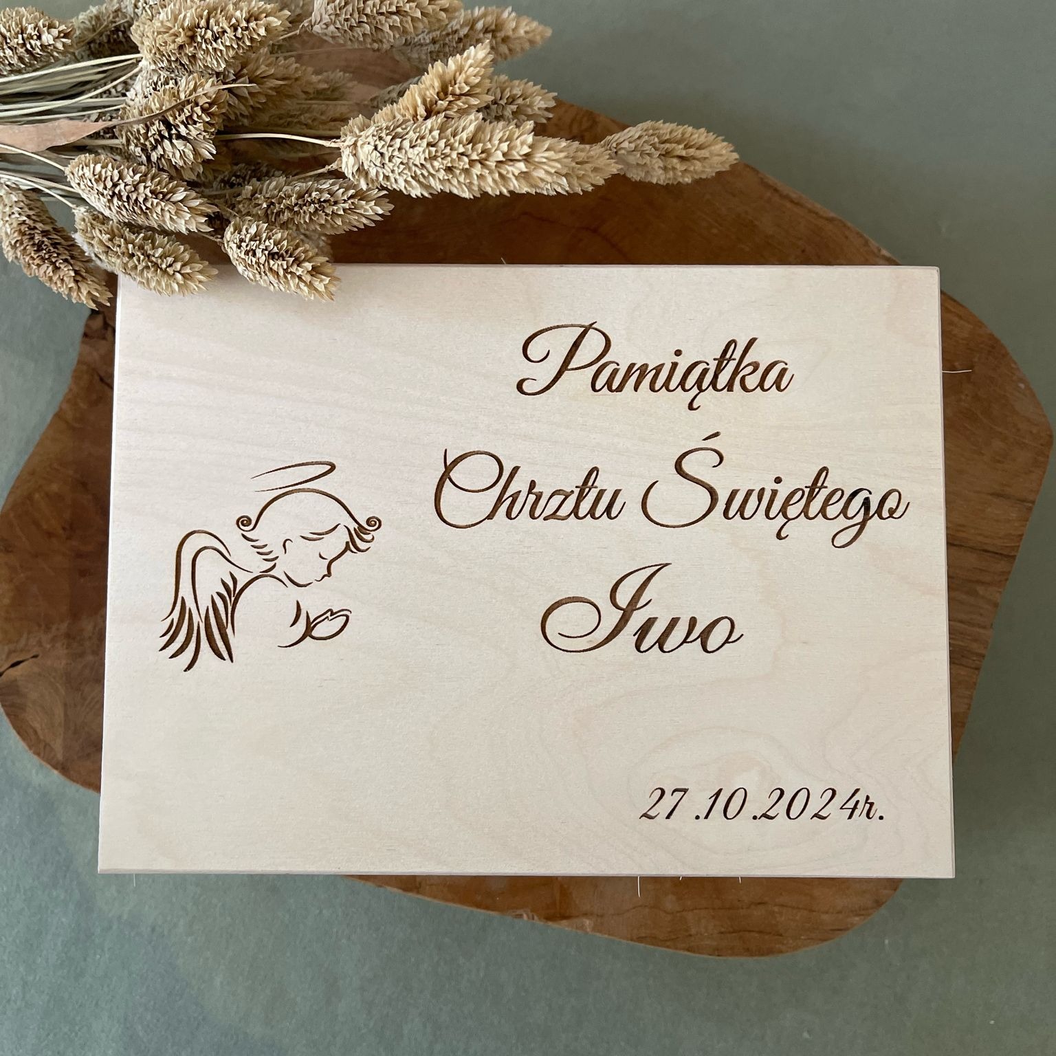 DREWNIANA SKRZYNKA Z GRAWEREM NA CHRZEST