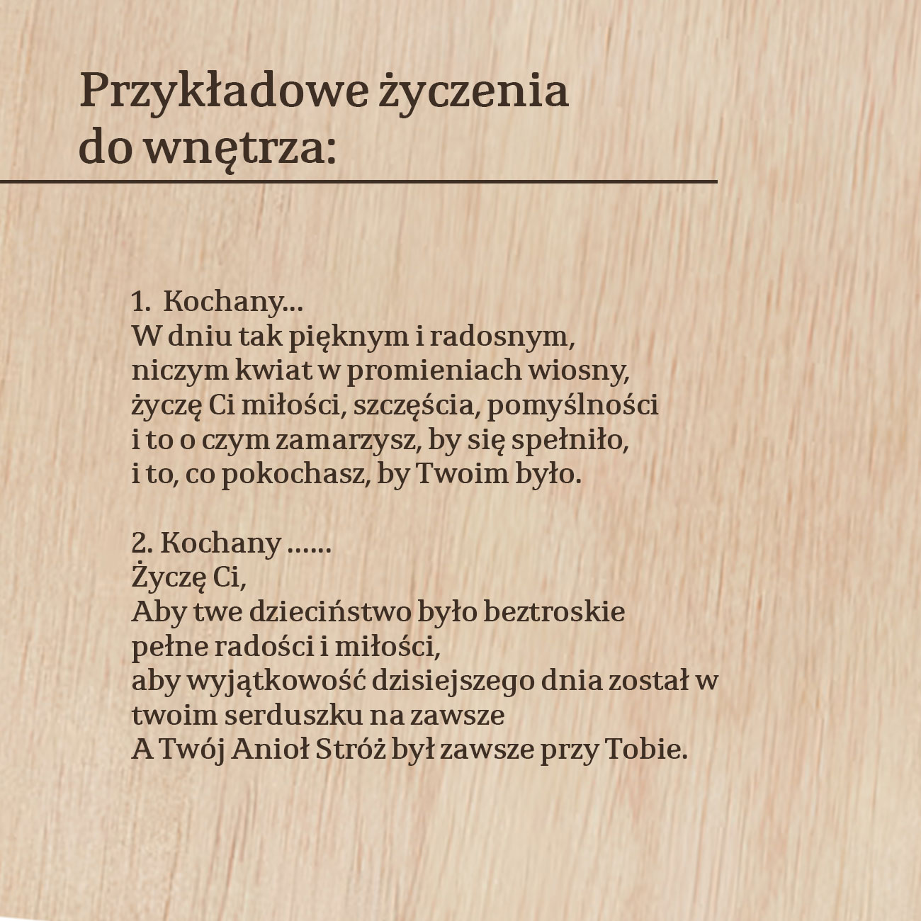 Grawer: na zewnątrz i wewnątrz (imię, data, dedykacja, życzenia)