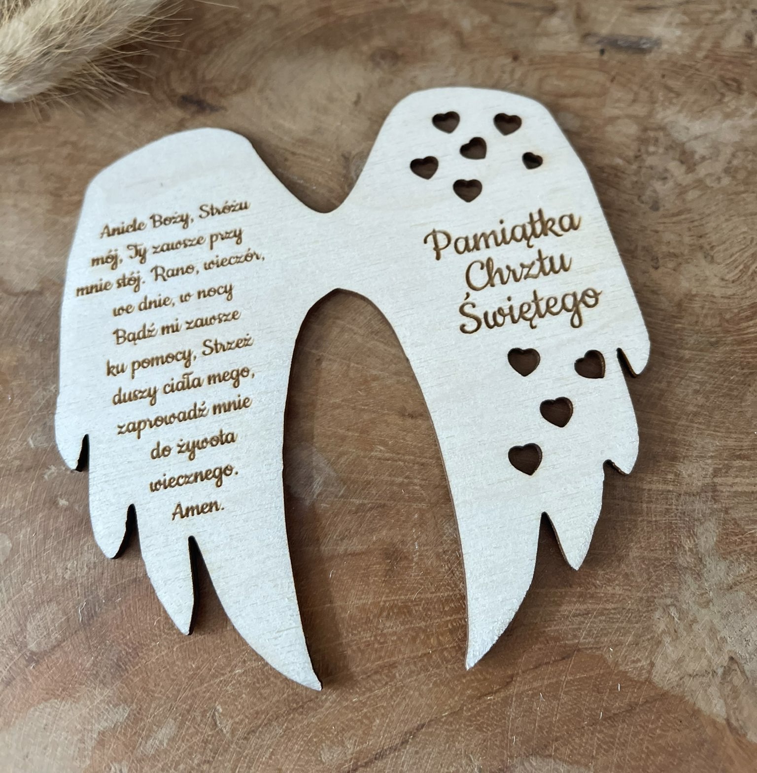 DREWNIANE SKRZYDŁA ANIELSKIE Z GRAWEREM NA SKRZYDLE