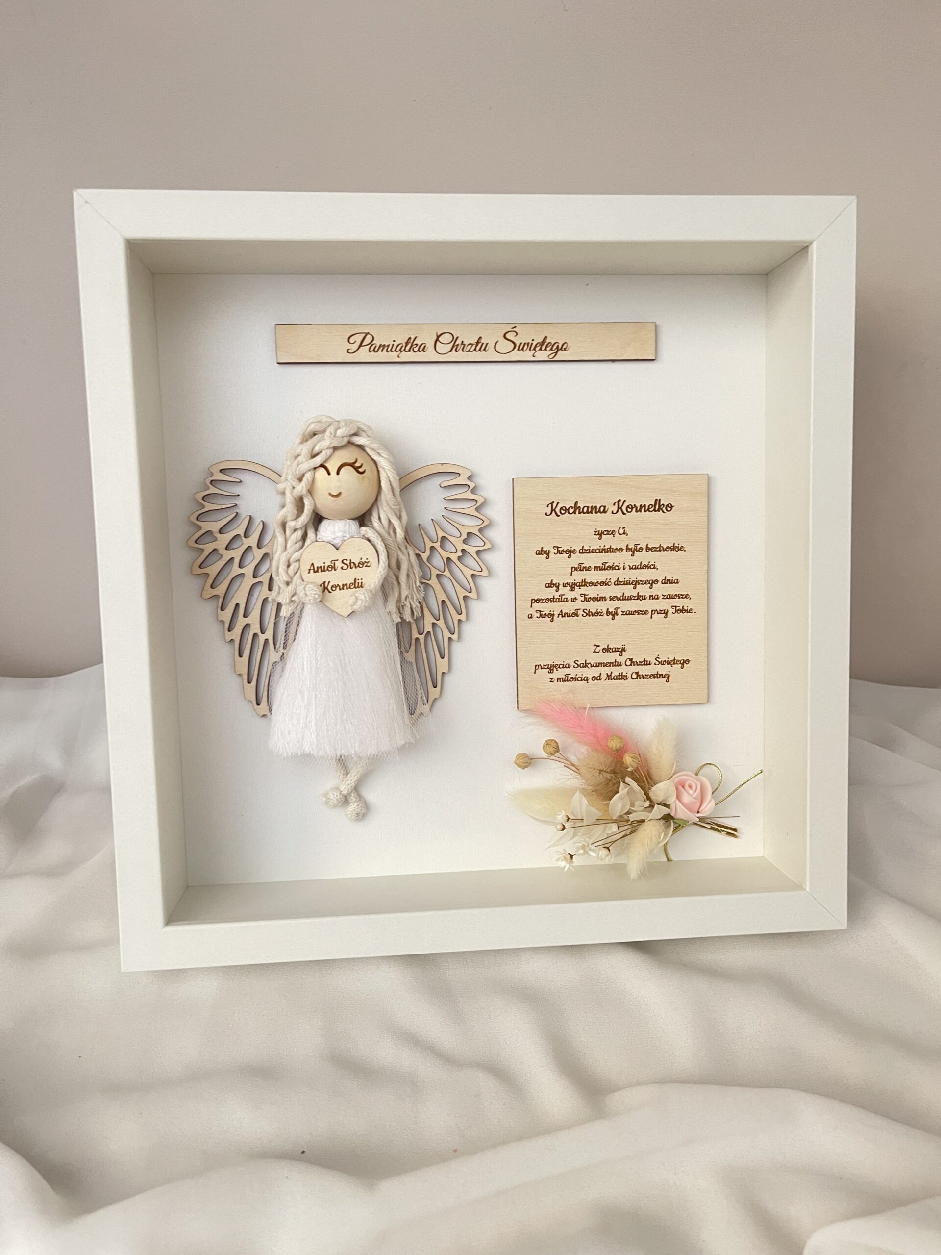 ANIOŁEK MAKRAMA W RAMCE NA PIERWSZĄ KOMUNIĘ I CHRZEST PAMIĄTKA CHŁOPIEC