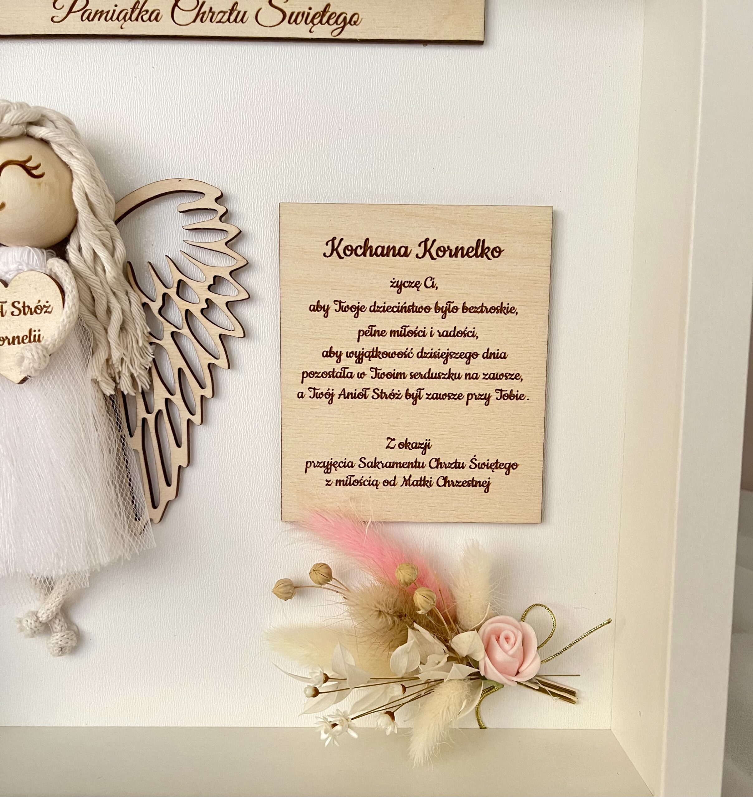 Personalizacja – po zakupie prosimy o podanie imienia oraz wszystkich danych, które mają zostać umieszczone w ramce (np. na jaką okazję jest prezent, data urodzenia, data Chrztu Świętego lub Komunii, modlitwa, życzenia).