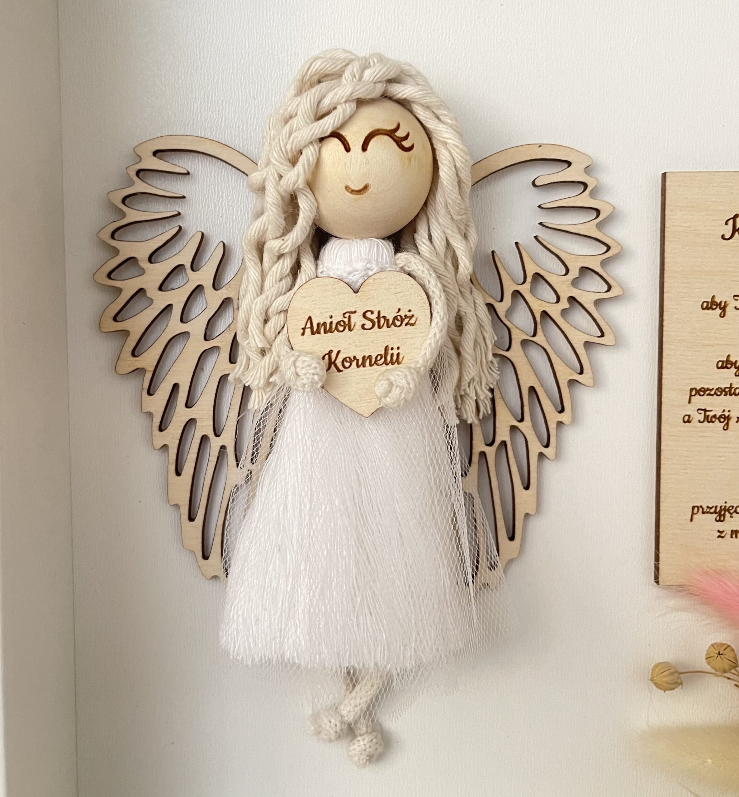 DUŻY ANIOŁEK MAKRAMA, RĘKODZIEŁO IDEALNY NA PREZENT CHRZEST, KOMUNIA