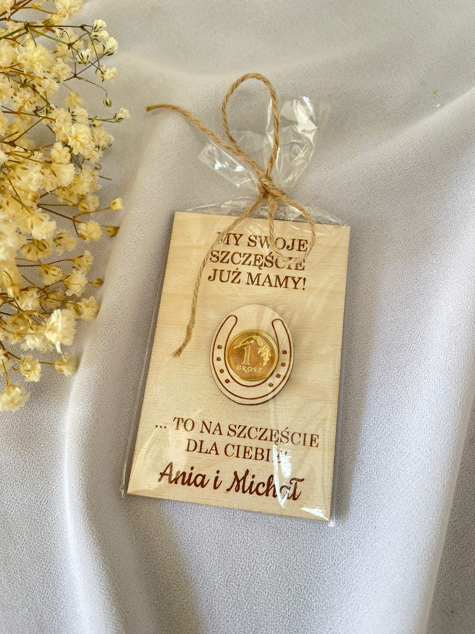 Grosik na szczęście podziękowanie Ślub Personalizacja 9x6cm KONICZYNKA