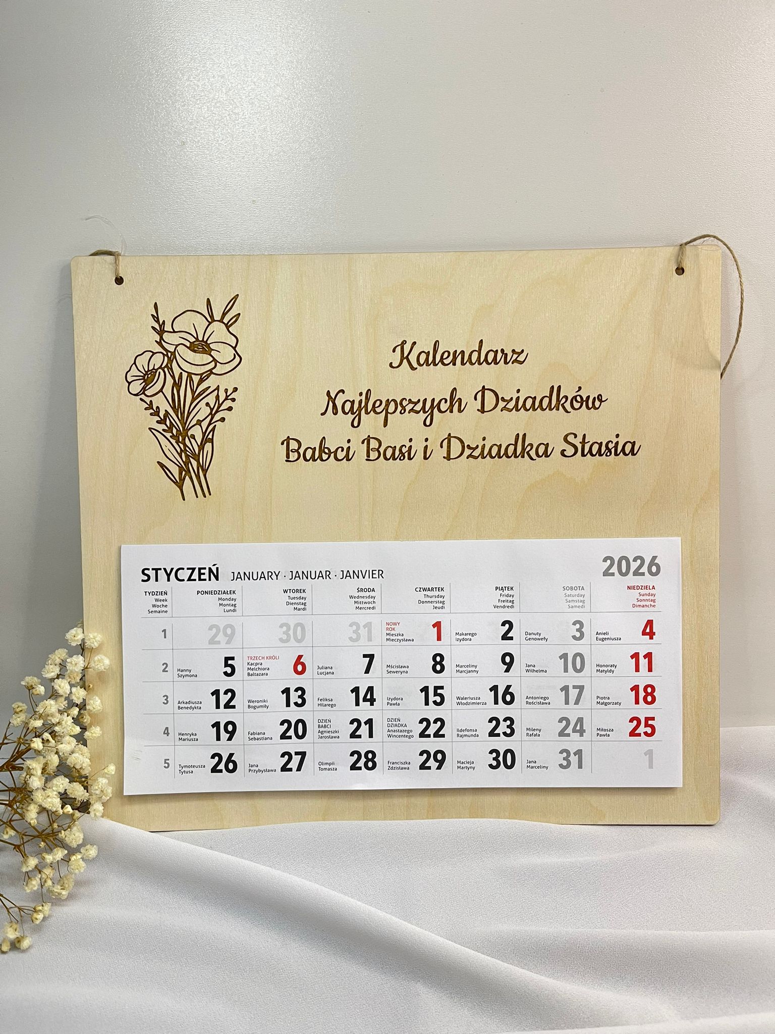 Kalendarz Drewniany – Dzień Babci i Dziadka 🌸
