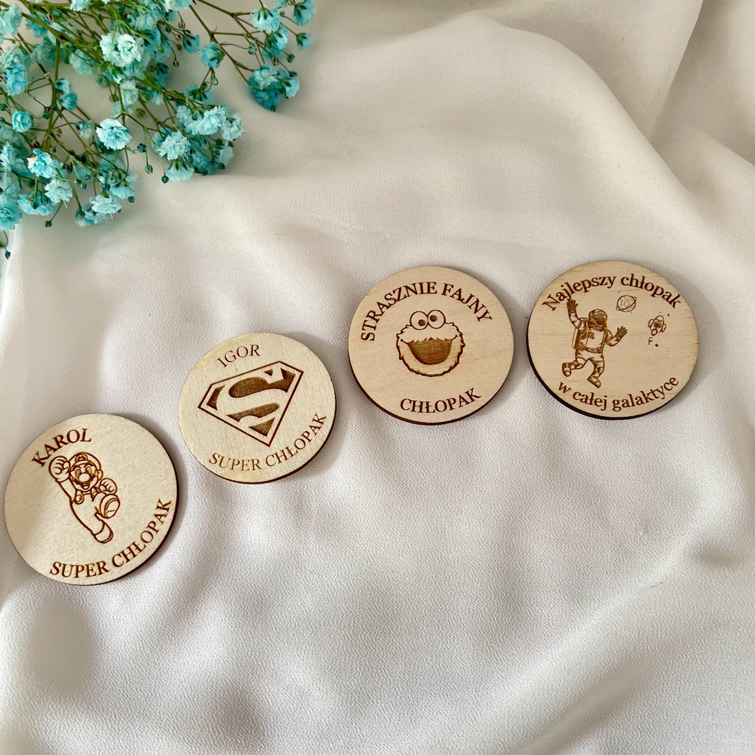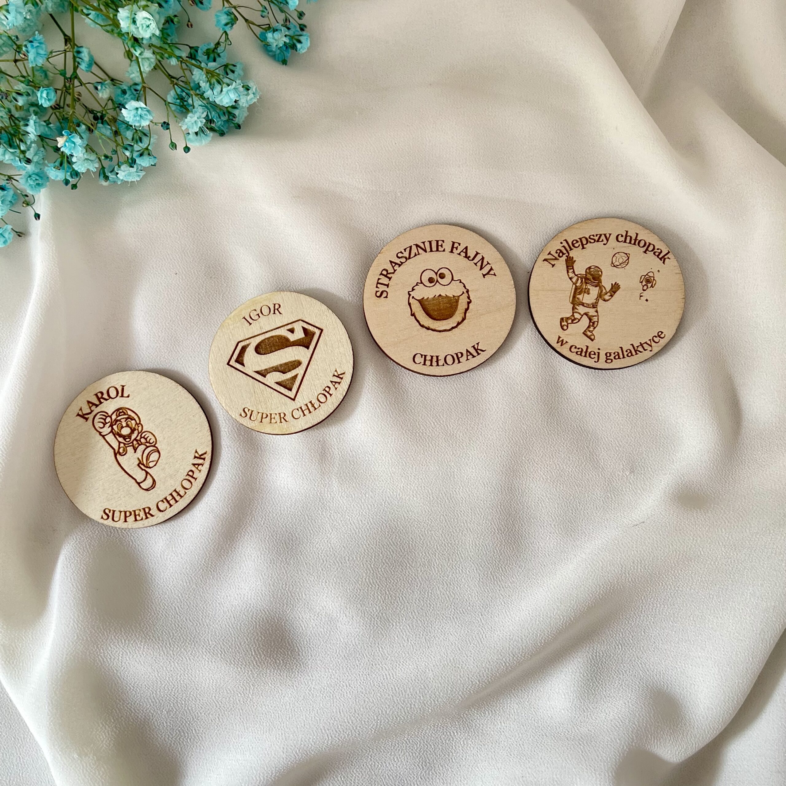 Szukasz drobnego prezentu, który wywoła uśmiech i zostanie na dłużej niż czekolada? Nasze drewniane magnesy grawerowane na sklejce to świetny wybór na Dzień Chłopaka. Każdy magnes ozdobiony jest zabawnym i wyjątkowym napisem: