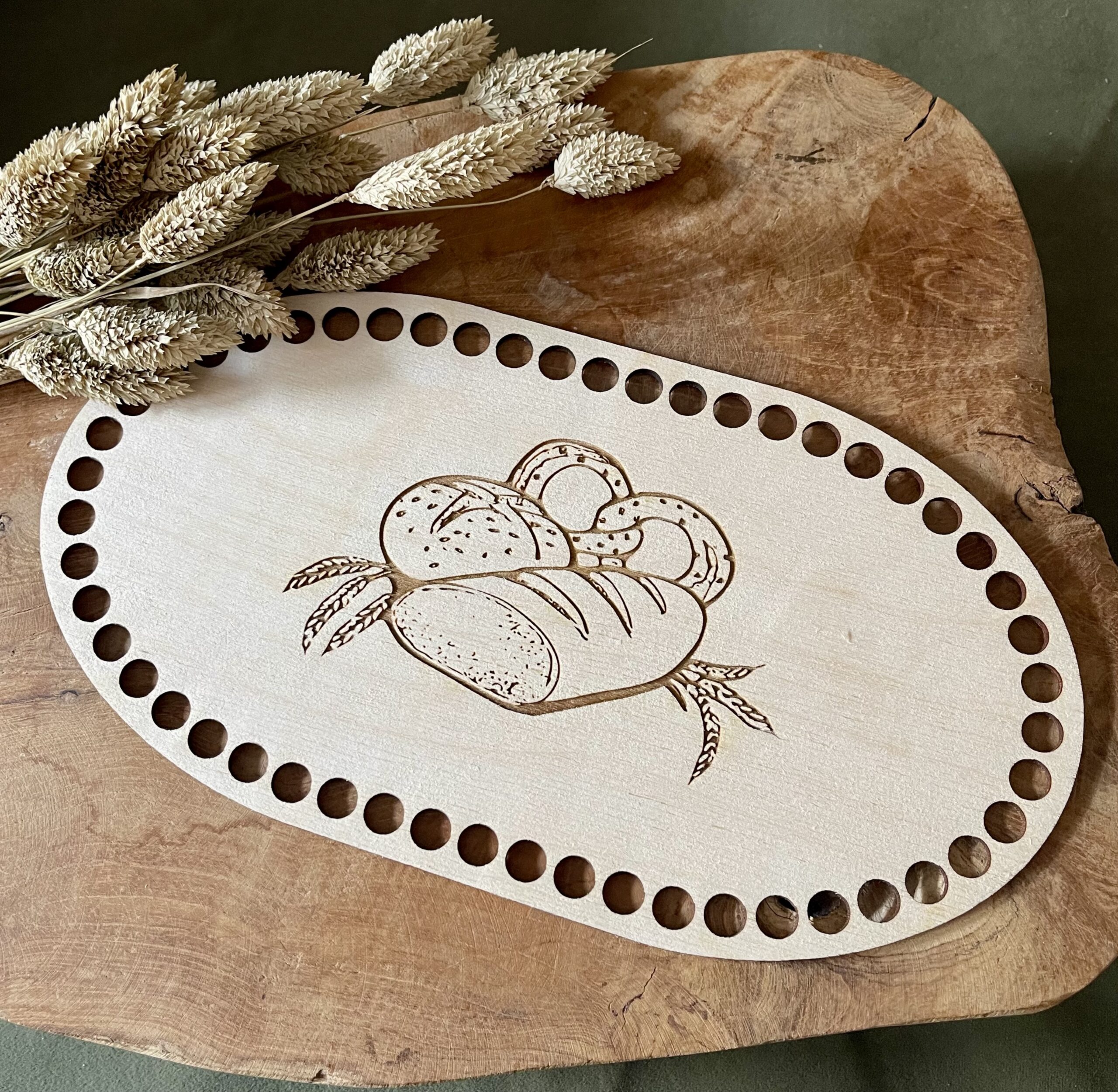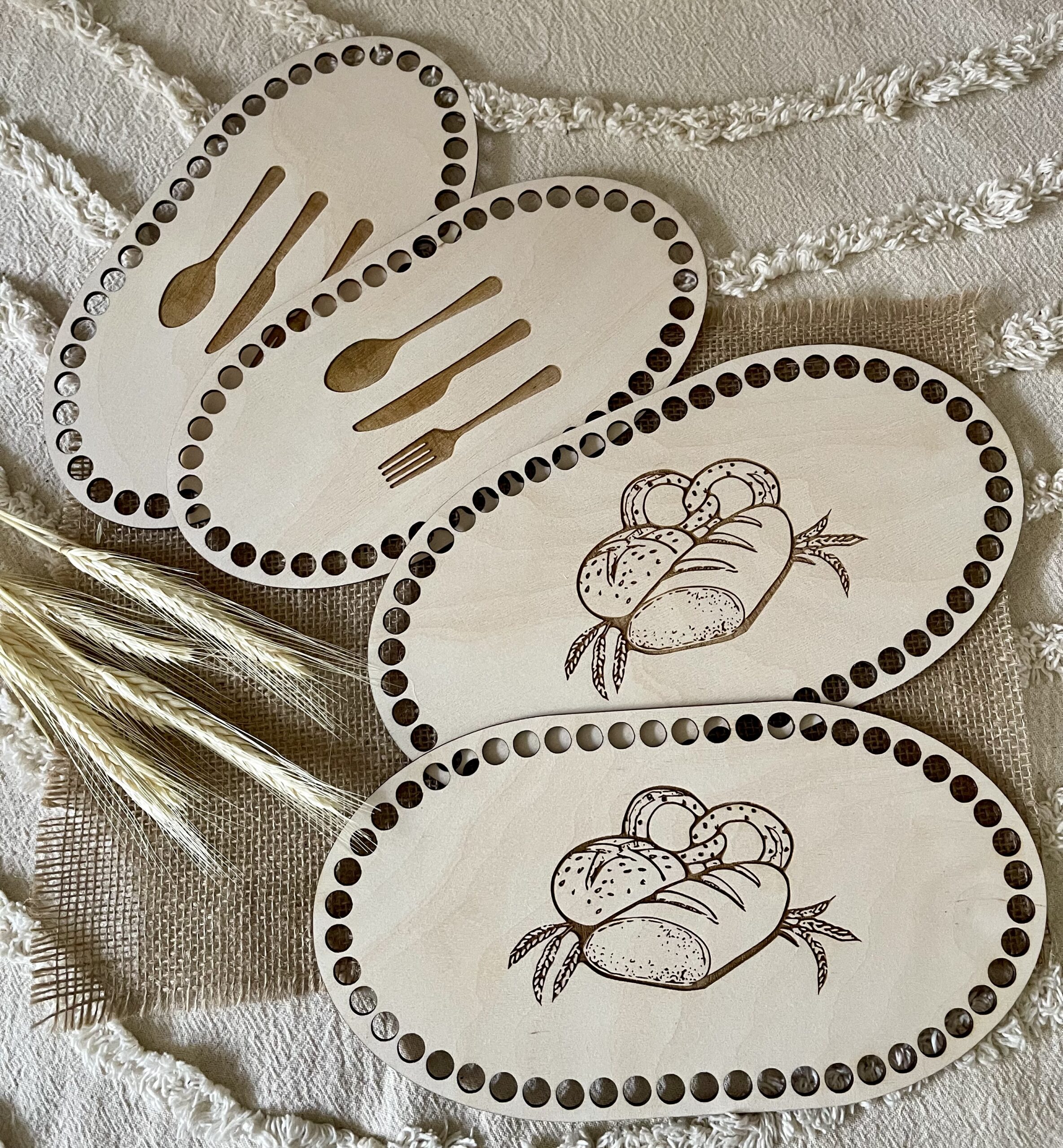 MAKRAMOWA BAZA DO KOSZYKA DNO KOSZ MOJŻESZA ZE SKLEJKI Z GRAWEREM