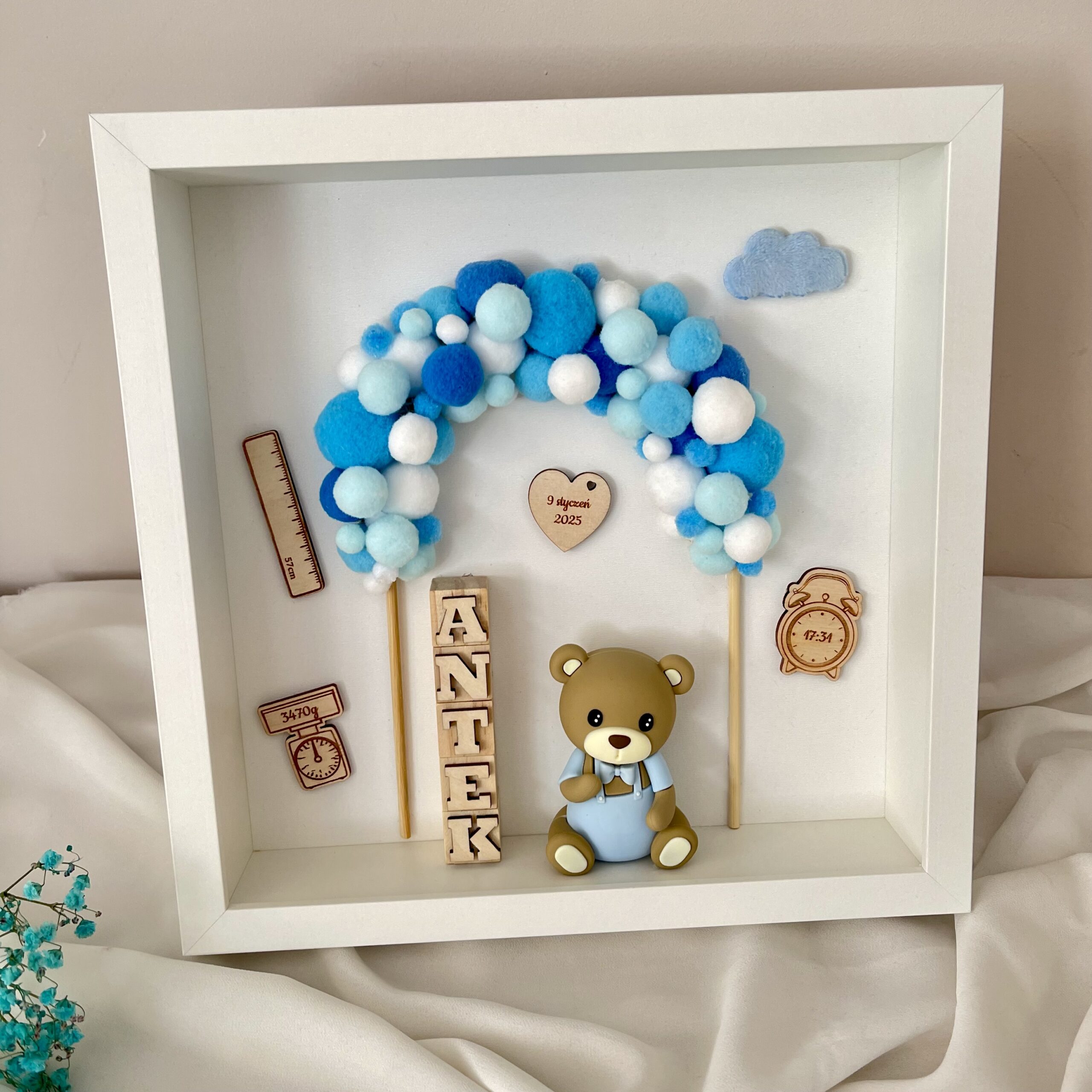 Metryczka dla dziecka w ramce PREZENT NA CHRZEST URODZINY PAMIĄTKA Chłopiec