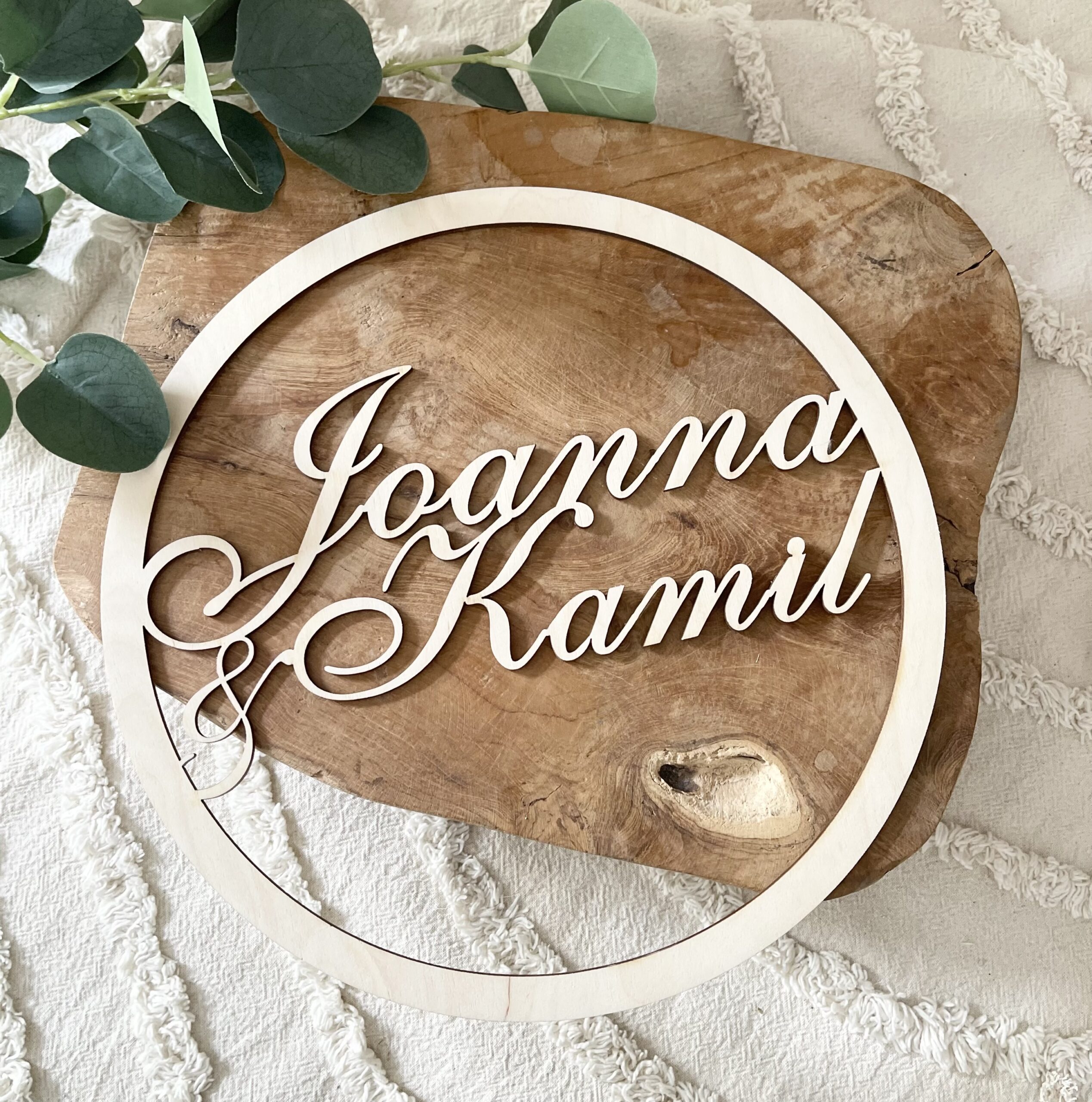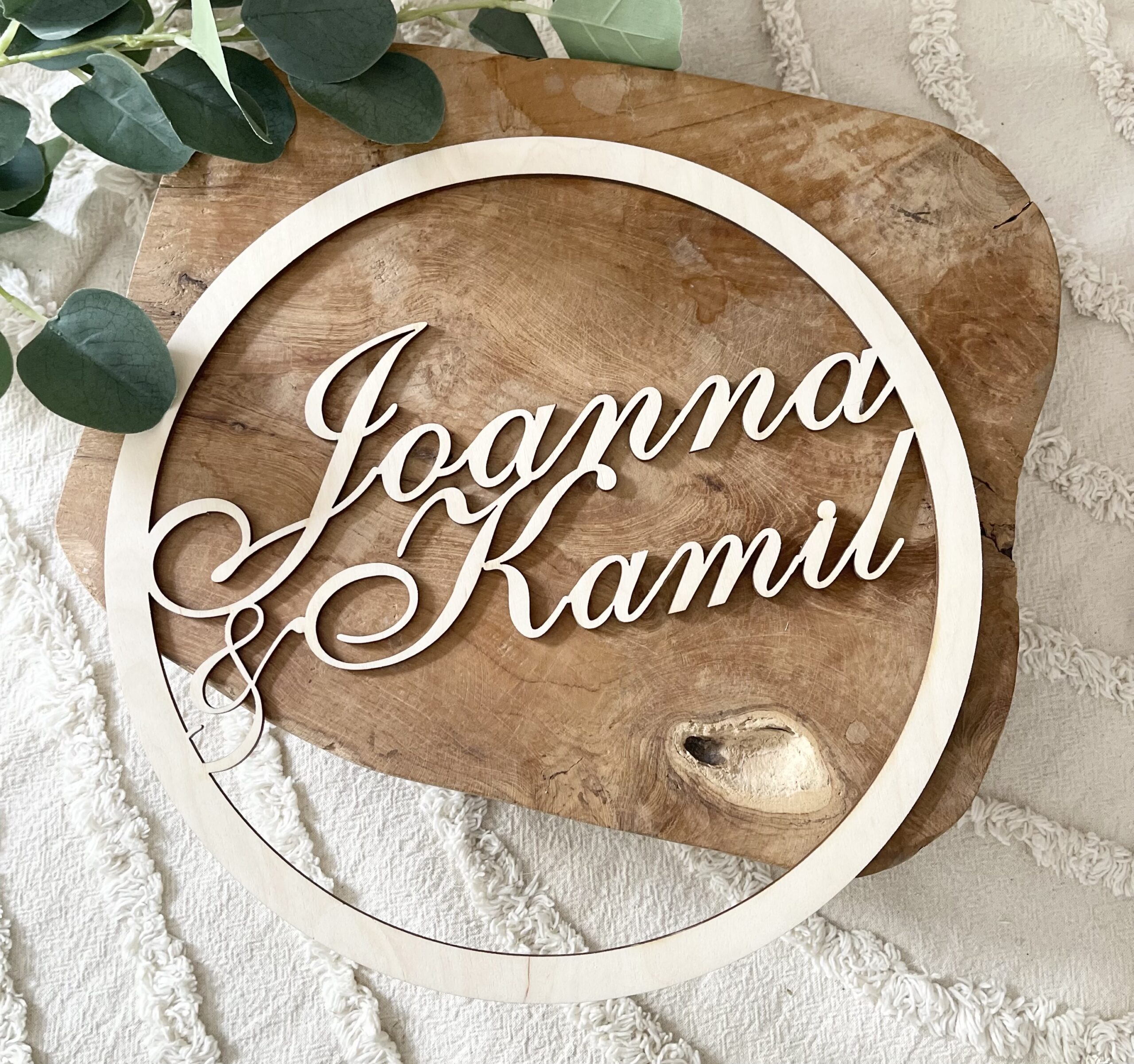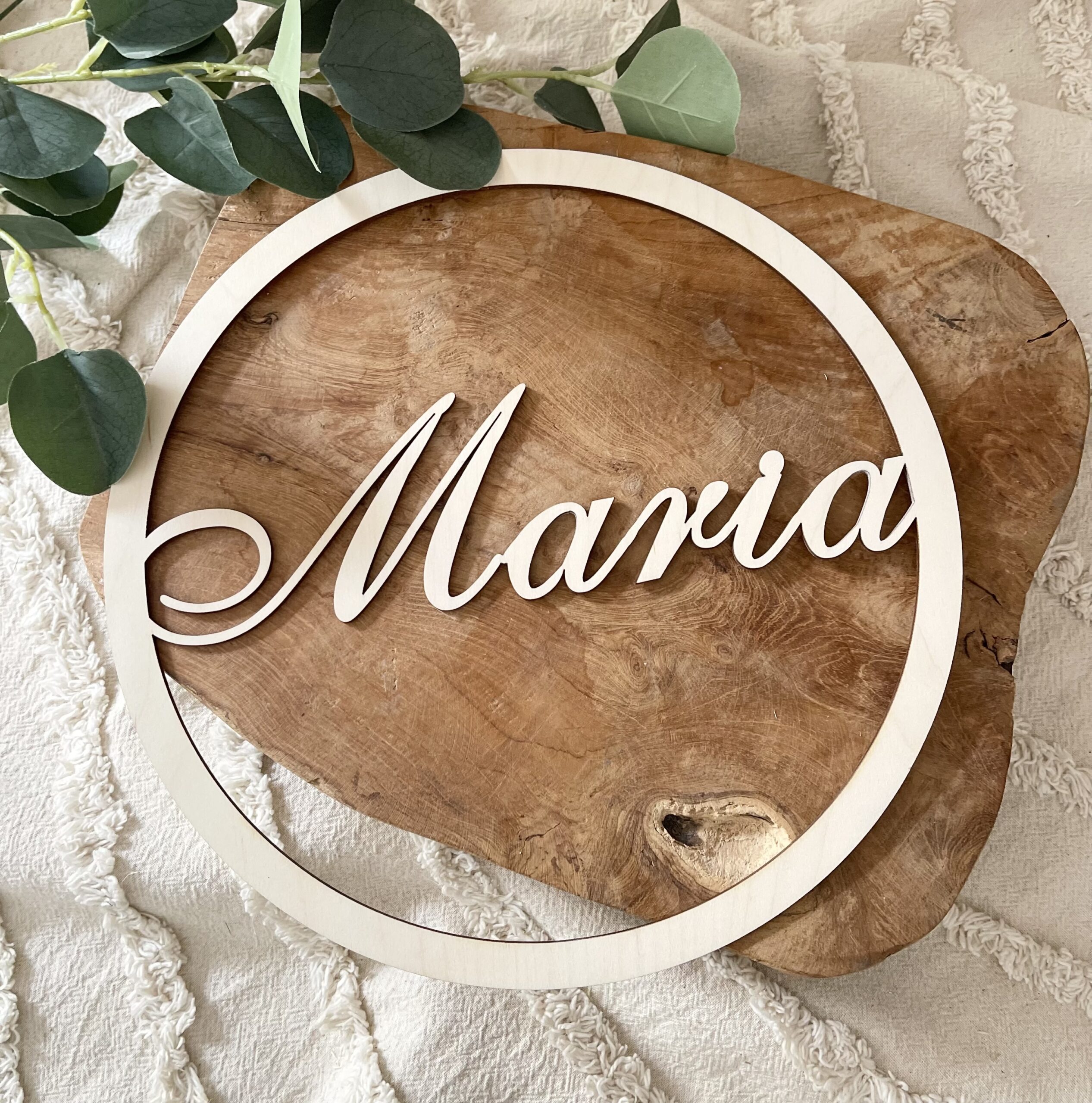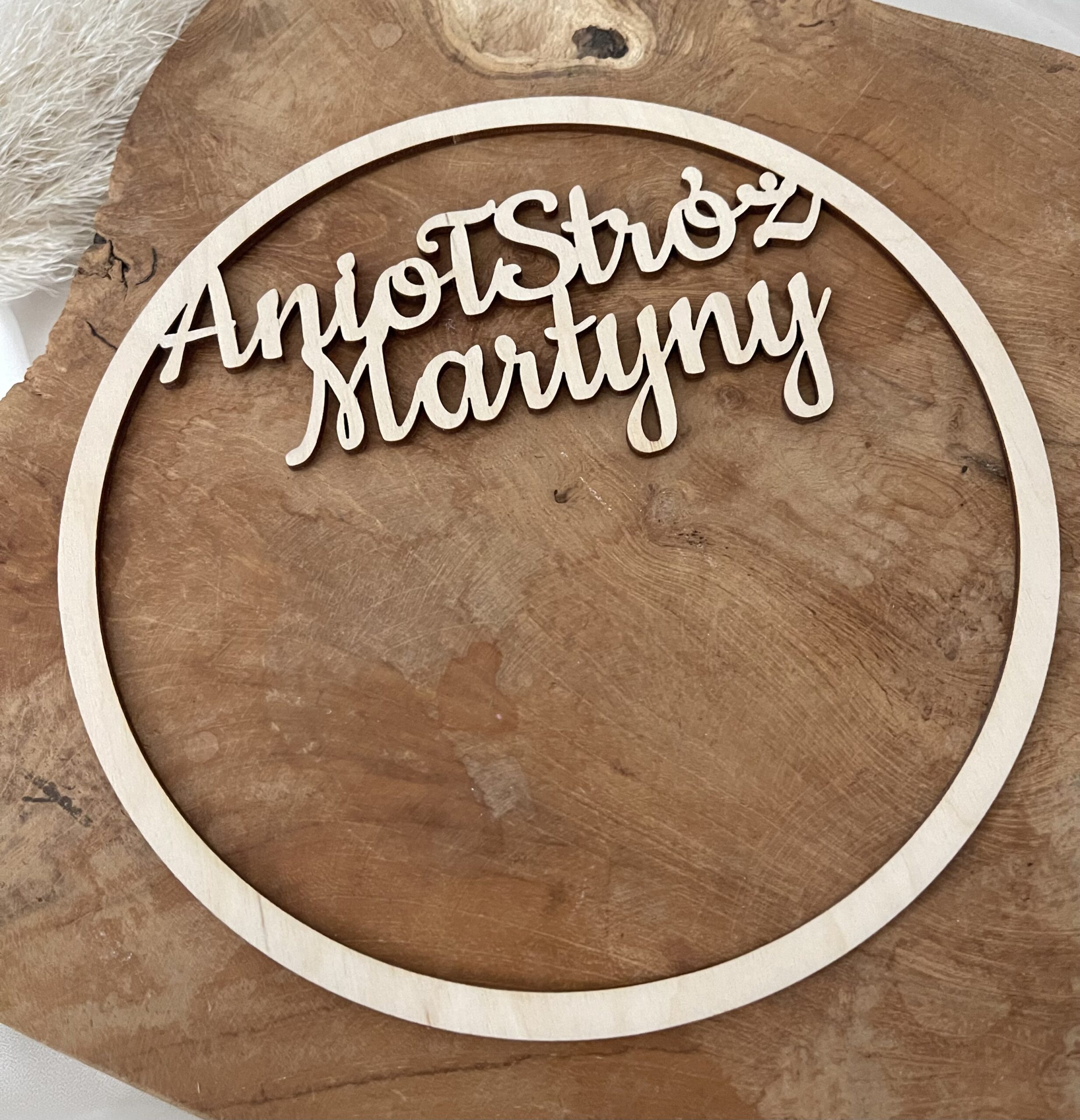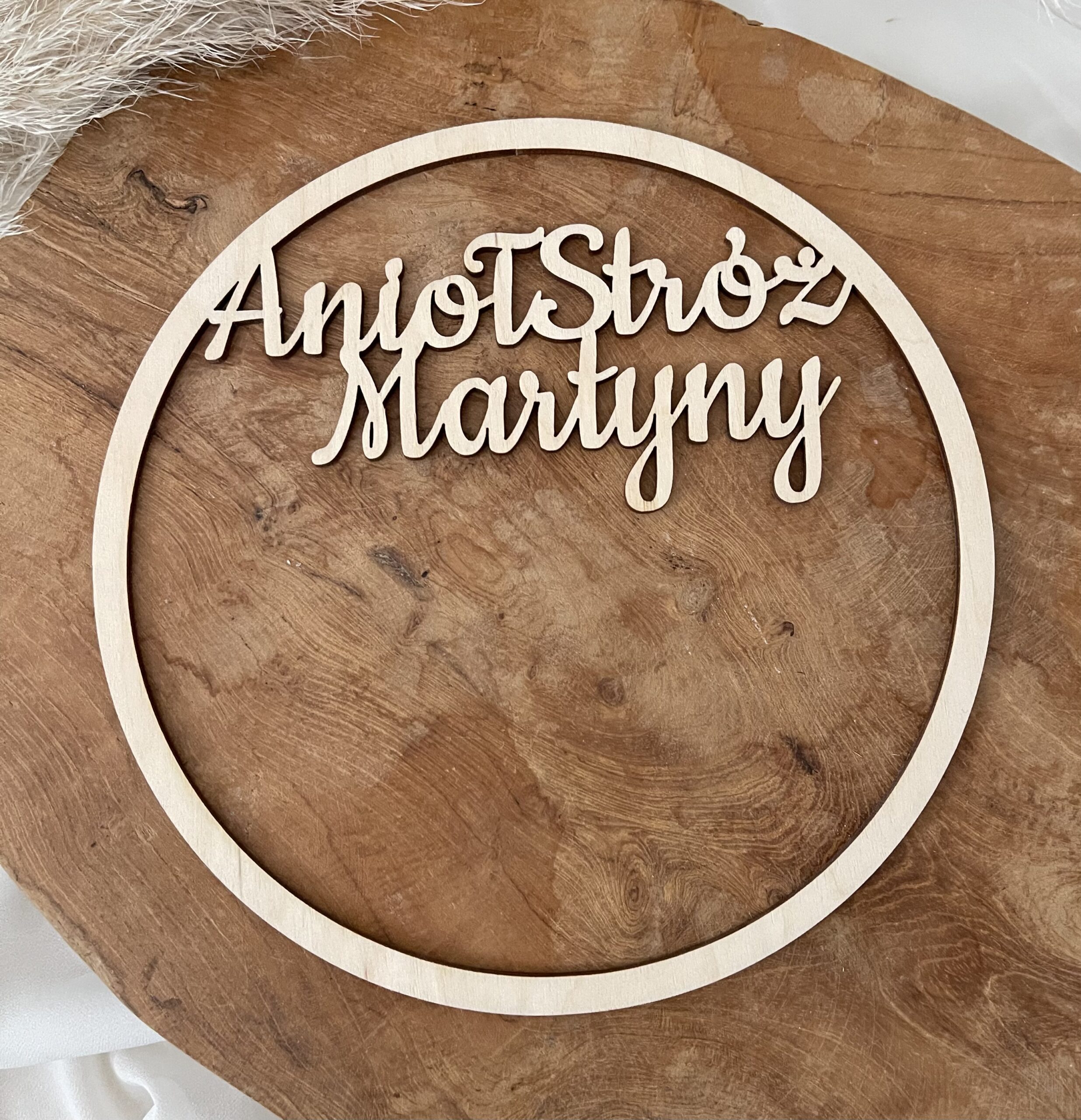Personalizowana obręcz ze sklejki brzozowej z dowolnym napisem to wyjątkowa dekoracja na każdą okazję. Idealna na prezent, do pokoju dziecka, na ślub czy jako ozdoba ściany. Dostępna w trzech rozmiarach: 15 cm, 20 cm i 30 cm.