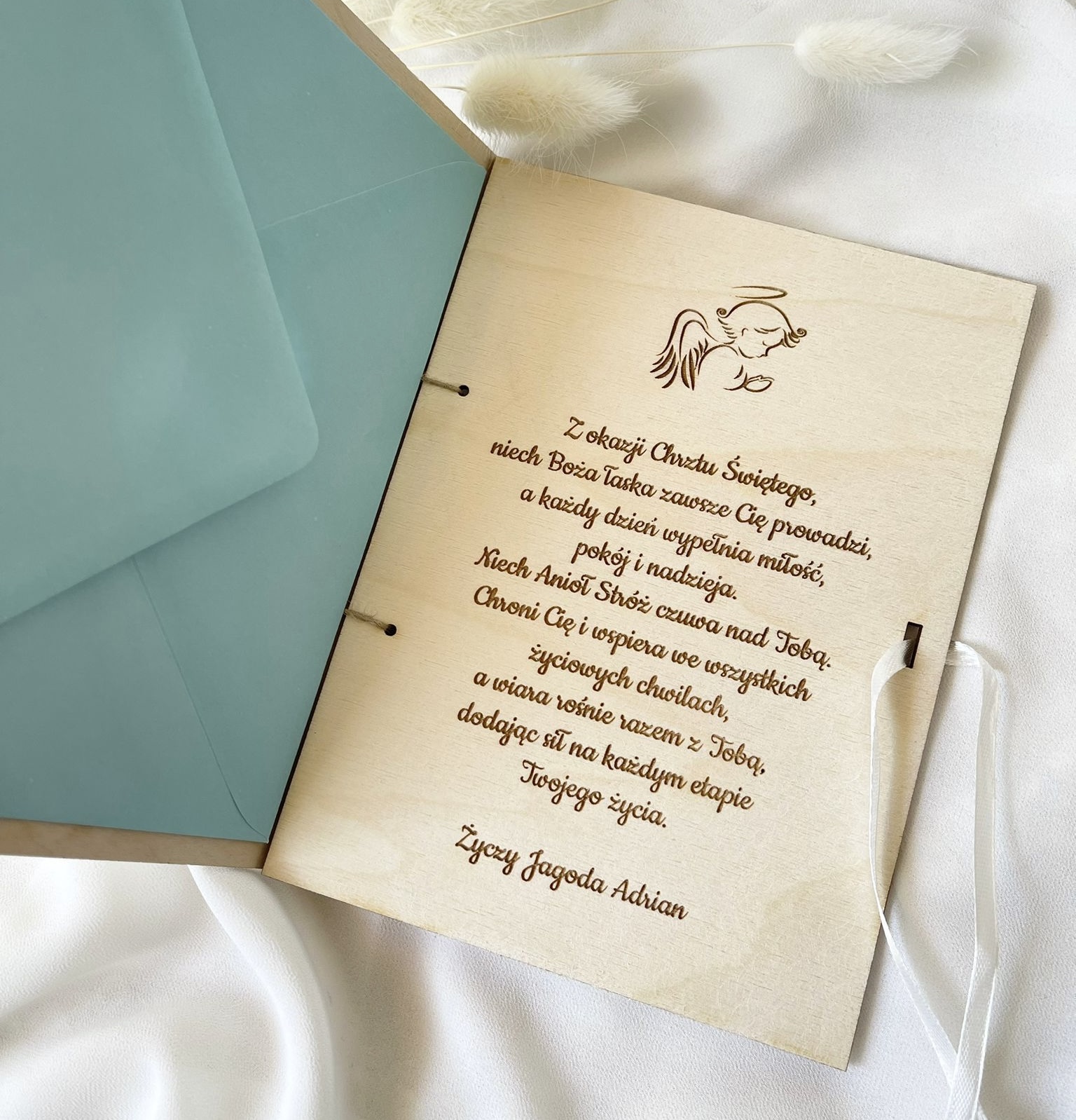 PAMIĄTKA CHRZTU ŚWIĘTEGO W FORMIE KARTKI Z ŻYCZENIAMI I KOPERTĄ