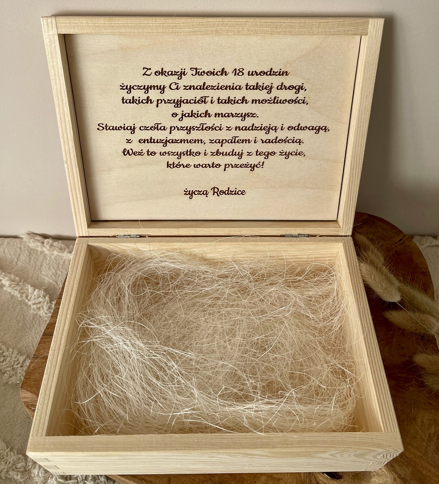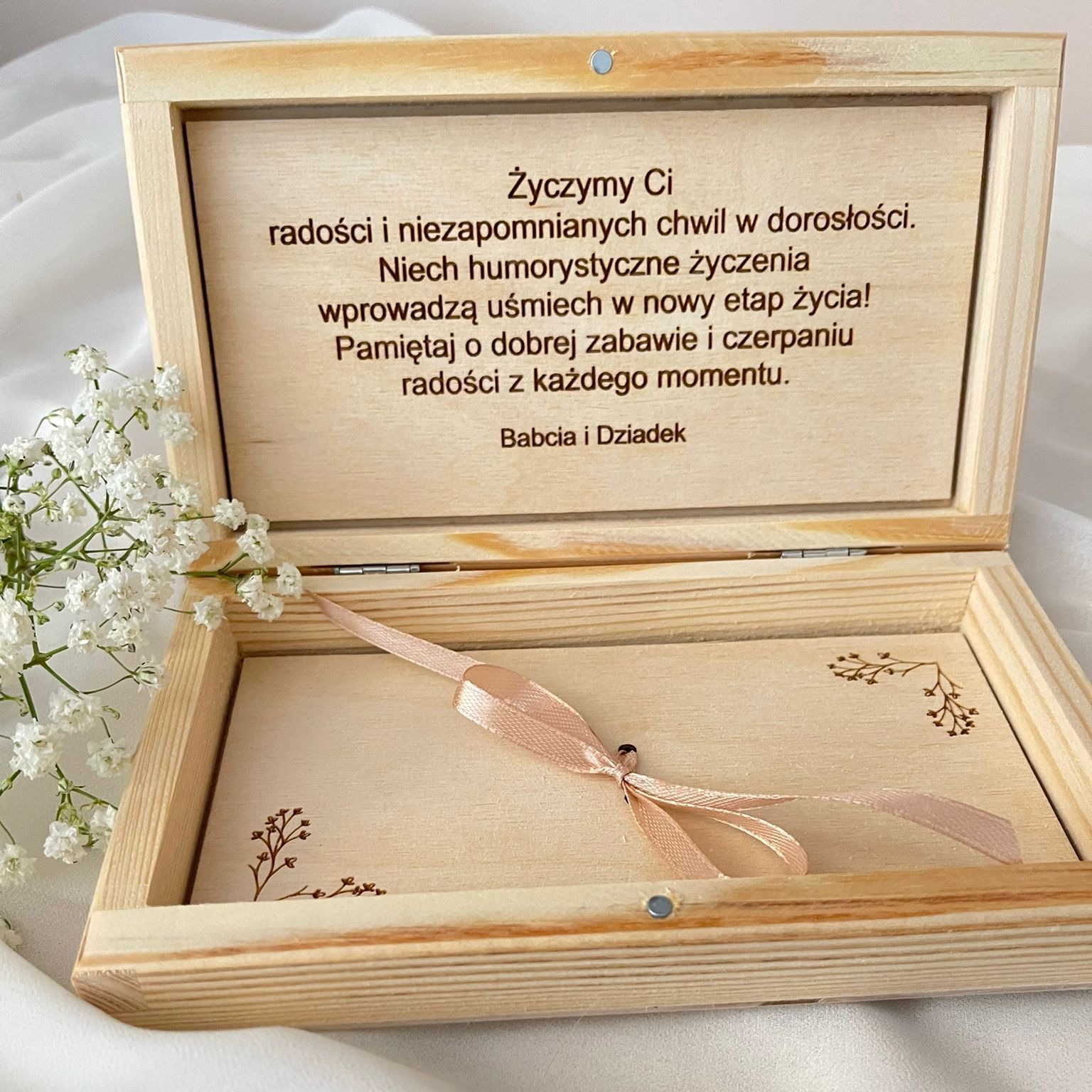 PERSONALIZOWANA DREWNIANA SKRZYNECZKA URODZINOWA NA PIENIĄDZE Z IMIENIEM