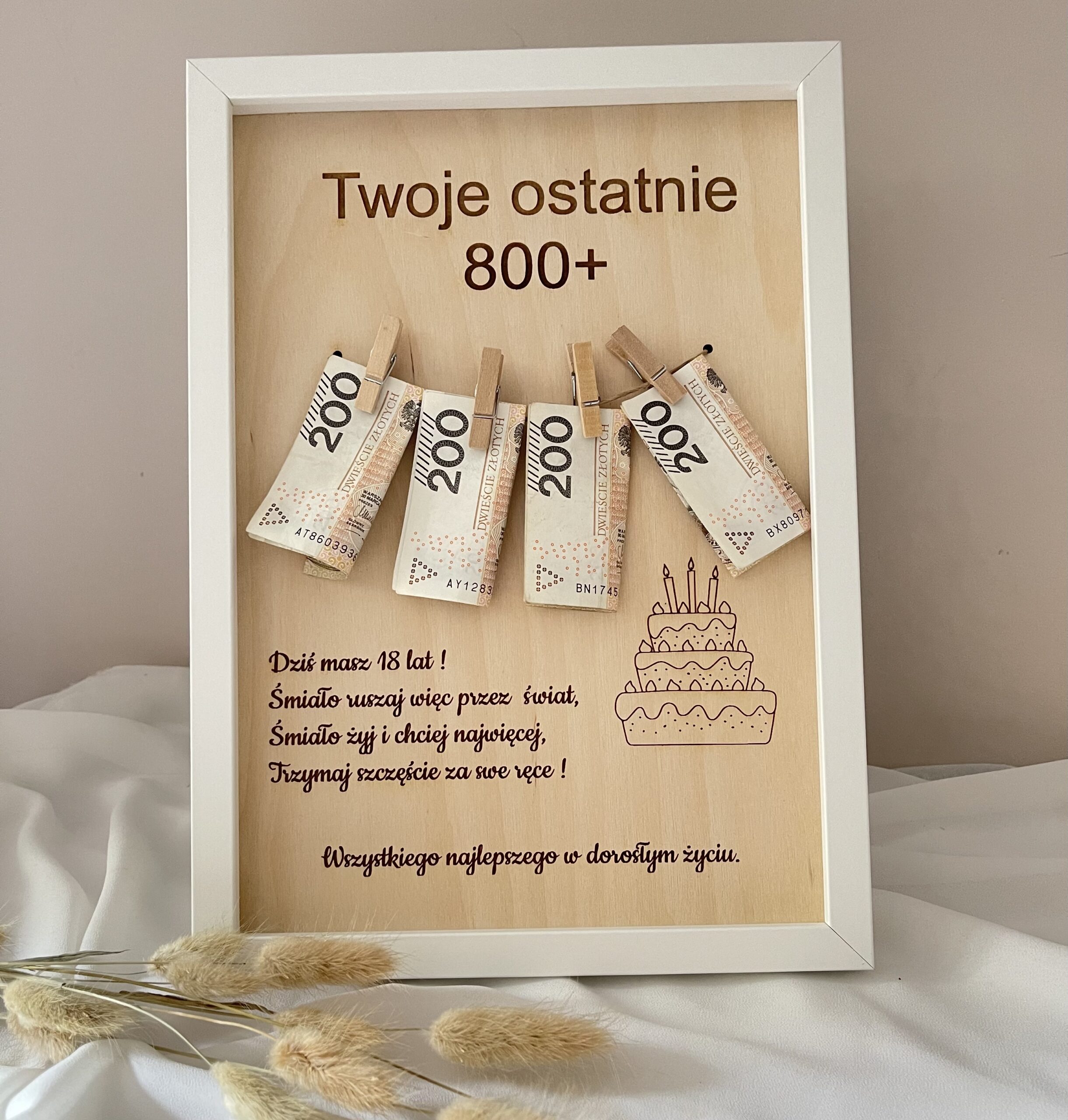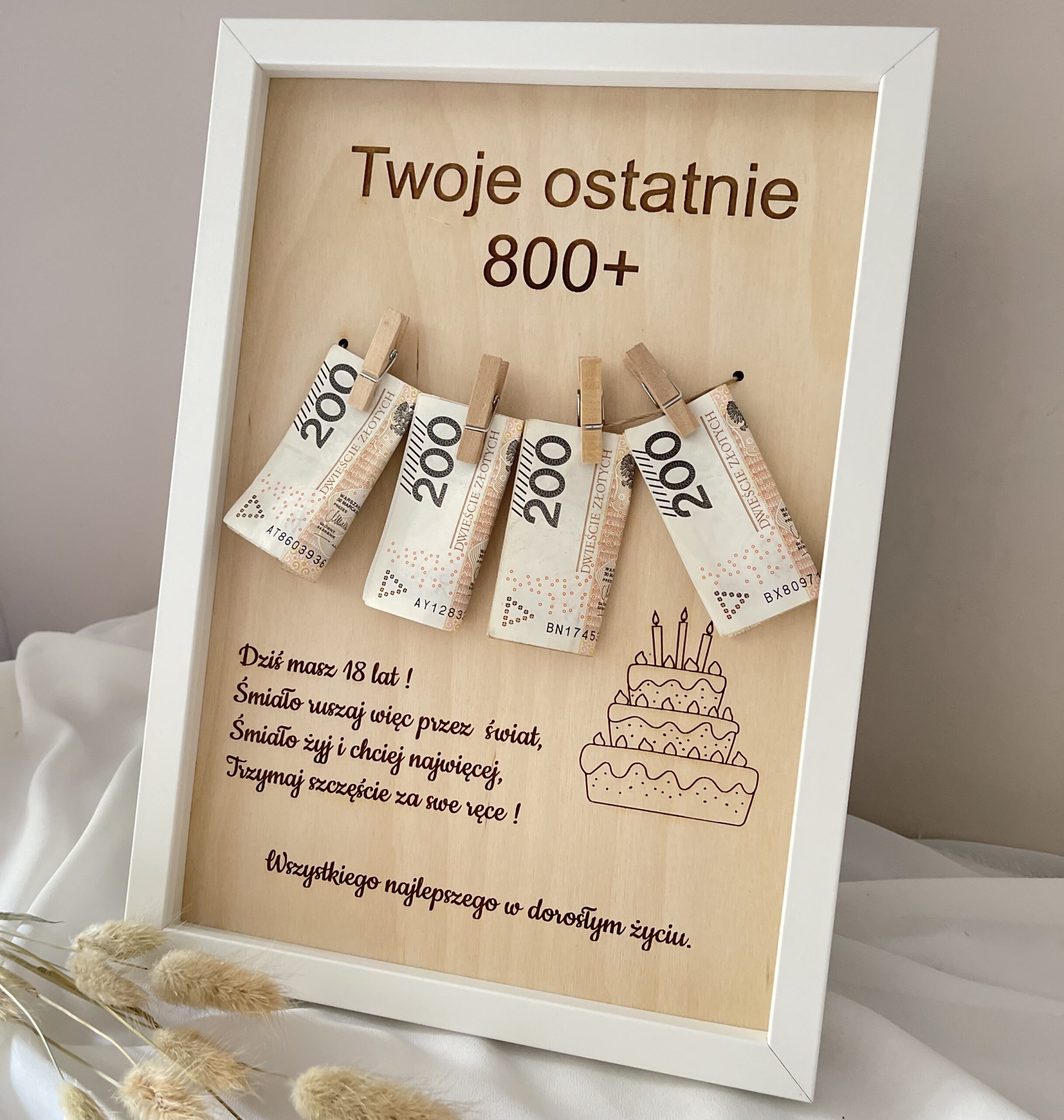 PREZENT URODZINOWA RAMKA, TABLICZKA NA PIENIĄDZE, OSTATNIE 800+