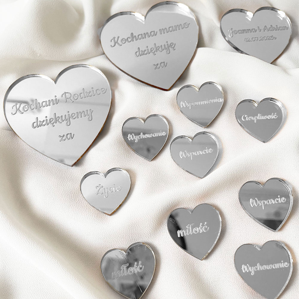 Serduszka ze złotej lustrzanej plexi z grawerem