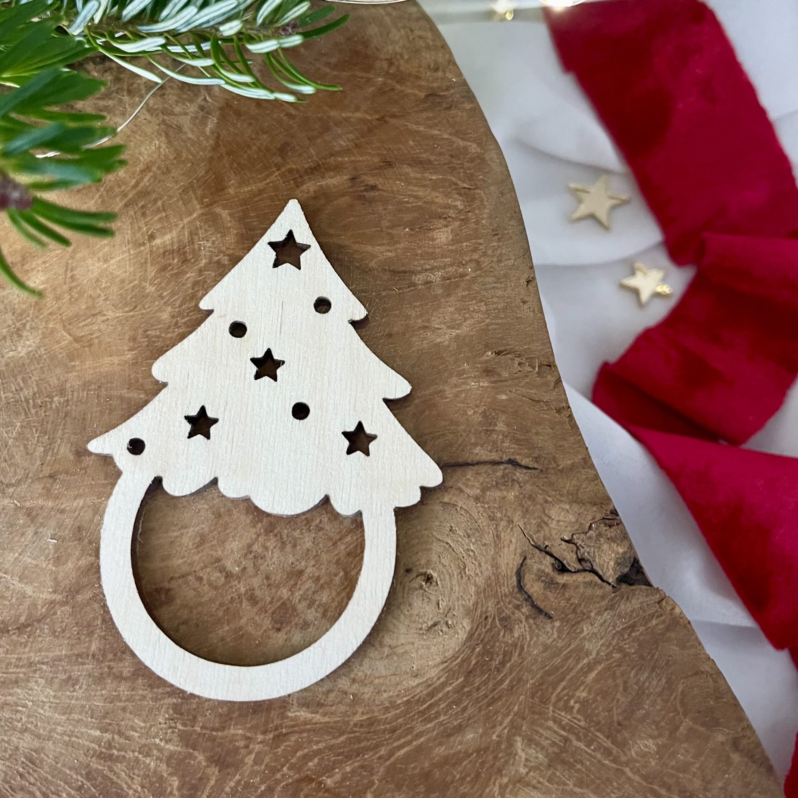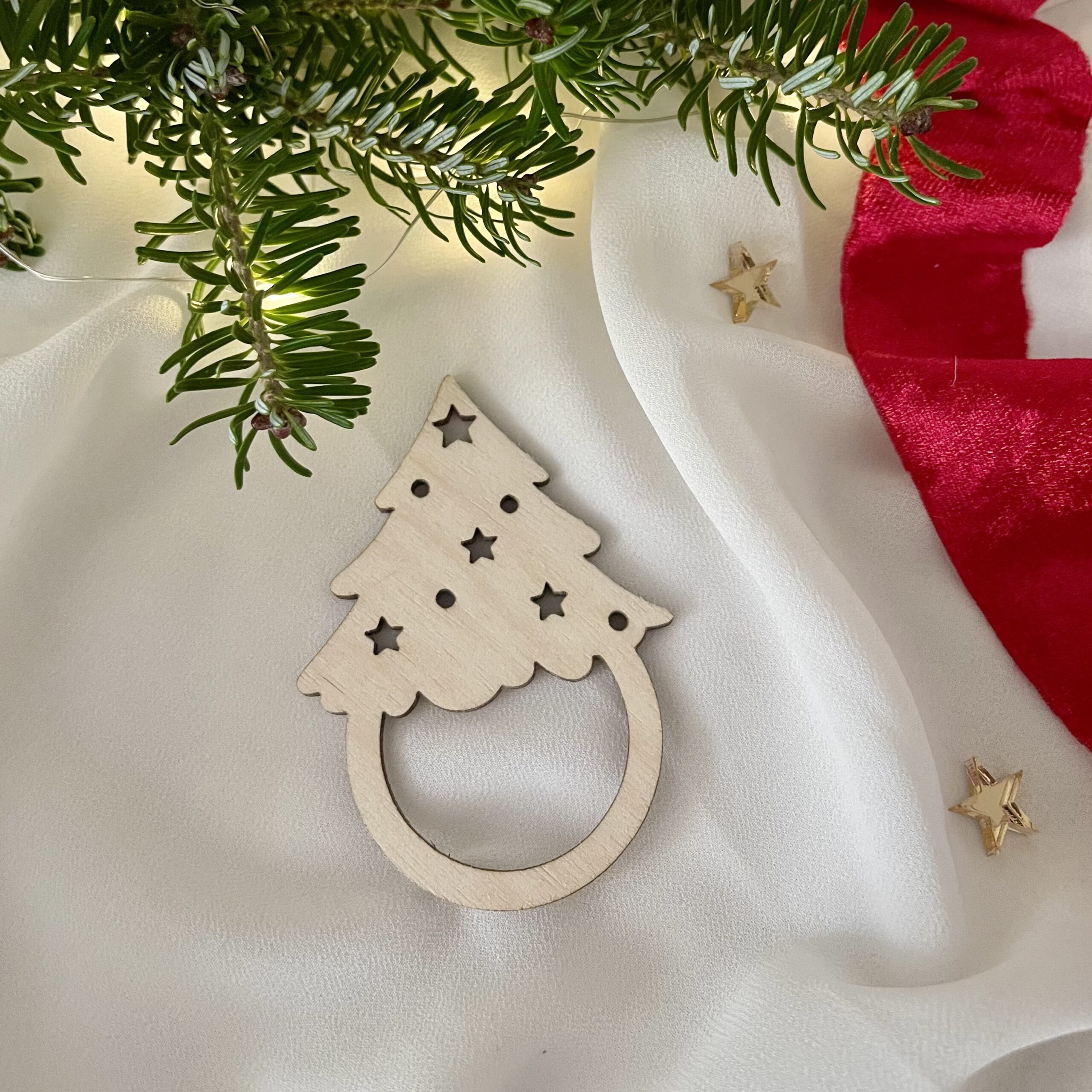 Obręcz wykonana ze sklejki brzozowej to praktyczny i dekoracyjny element świątecznego stołu. Motyw choinki nadaje jej świątecznego charakteru, dzięki czemu cała aranżacja zyskuje elegancki i spójny wygląd.