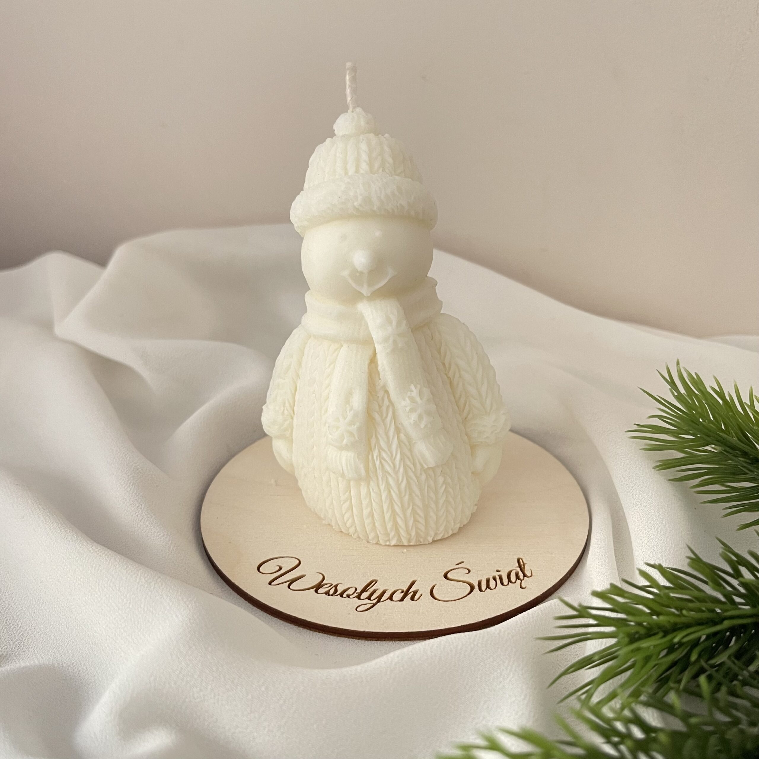 Świeca sojowa Bałwan z grawerowaną podstawką – klimatyczna świeca w wyjątkowej formie