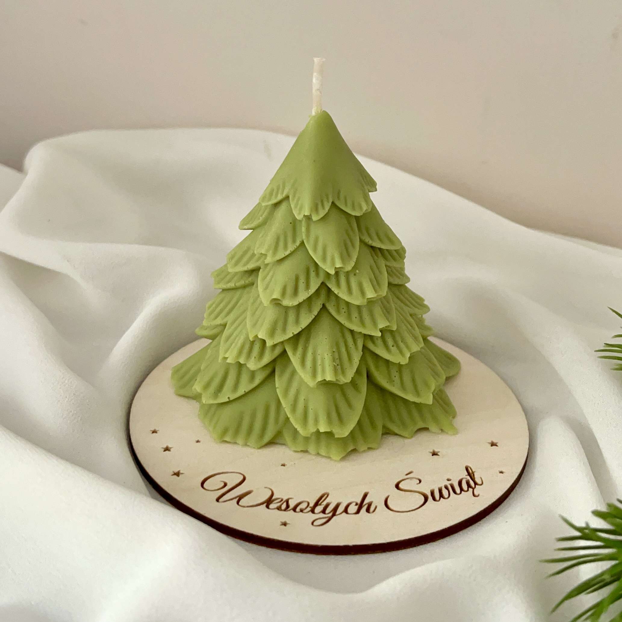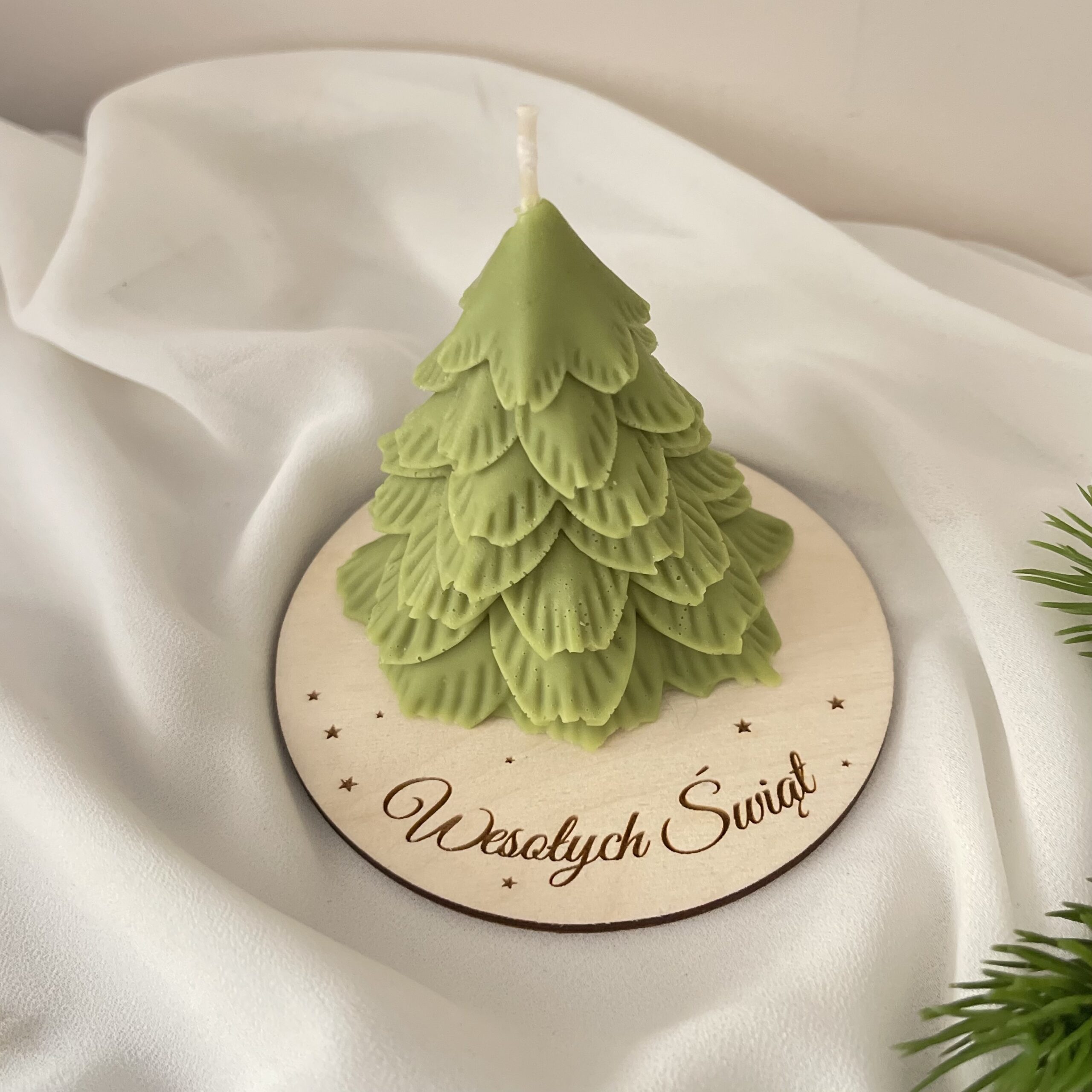 Świeca sojowa Choinka z grawerowaną podstawką– klimatyczna świeca w wyjątkowej formie