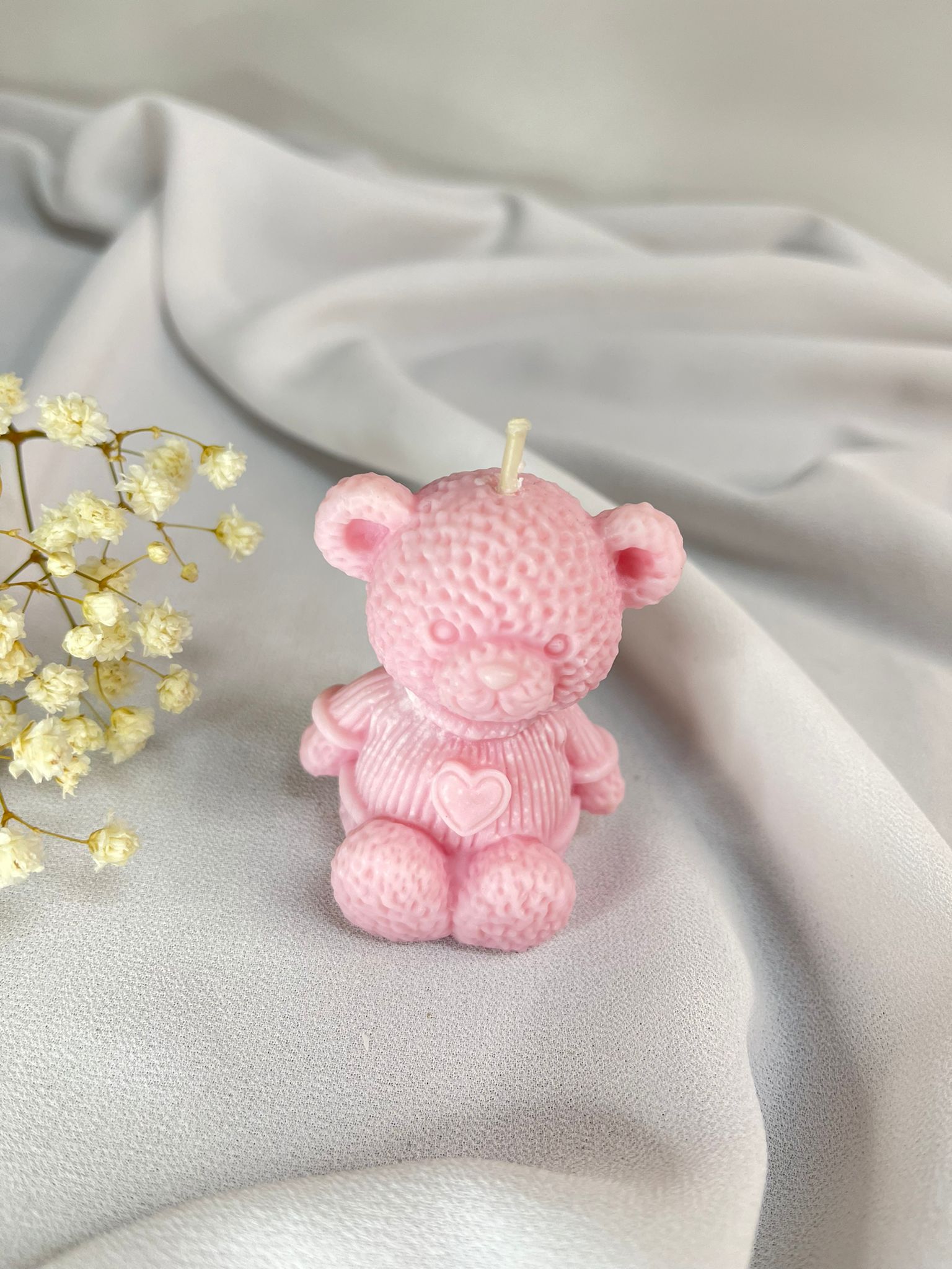 Świeca Sojowa Miś Podziękowanie Chrzest Komunia Babyshower róż