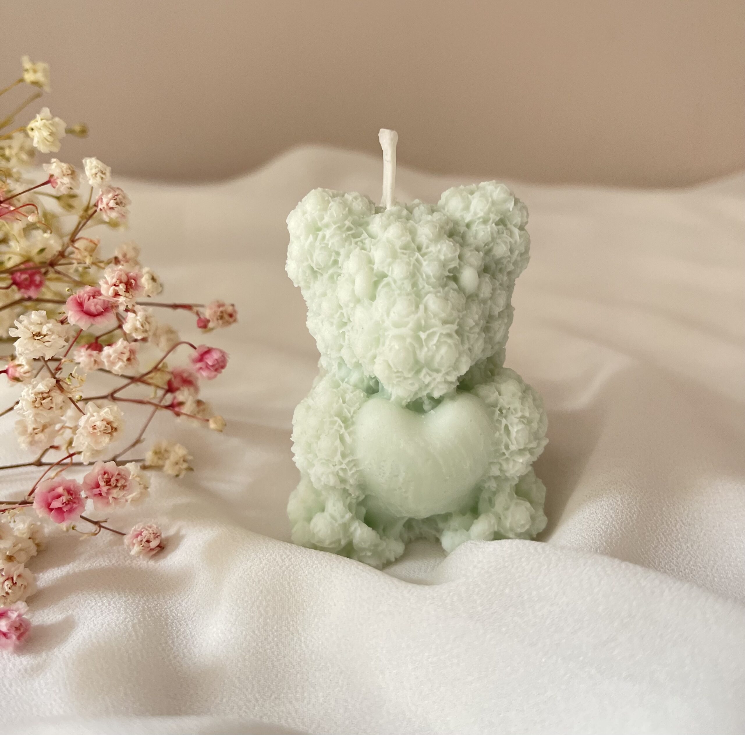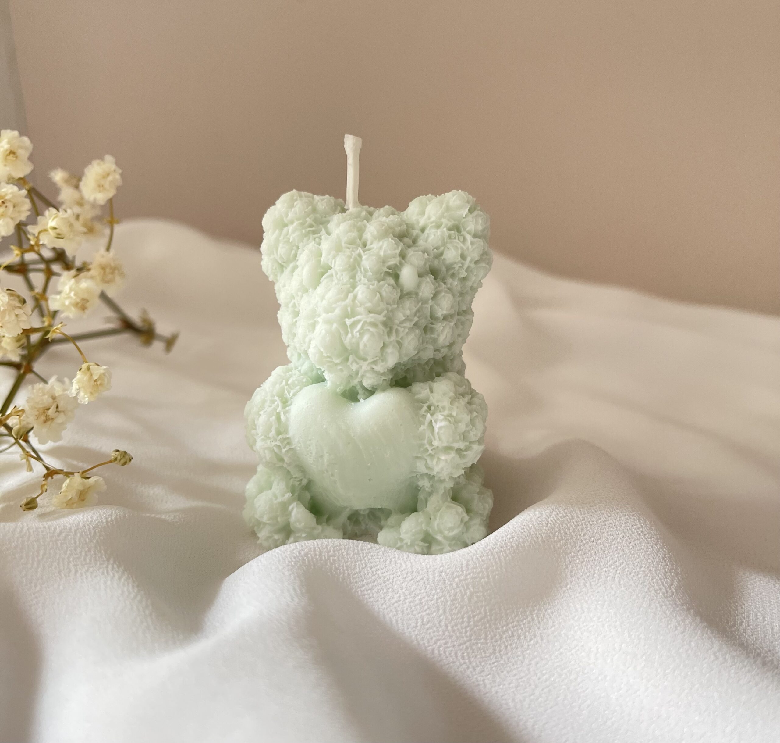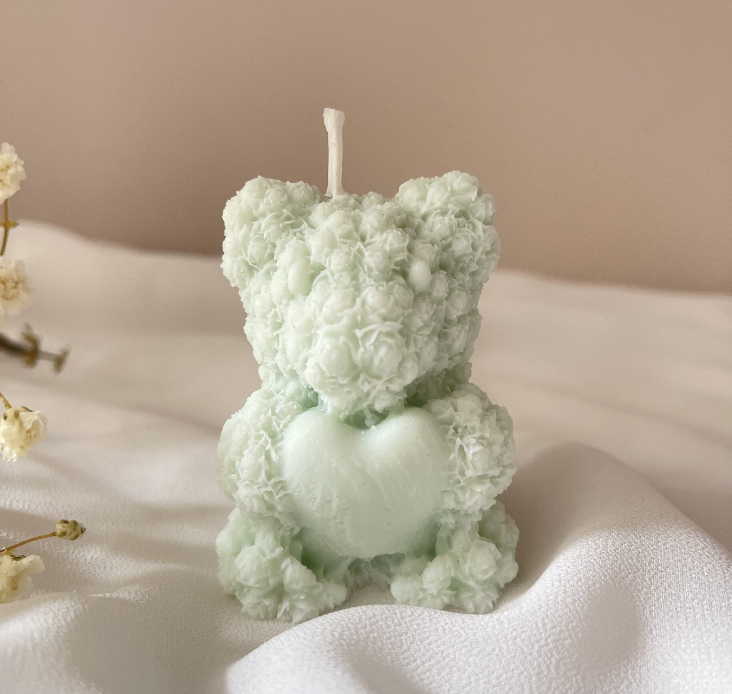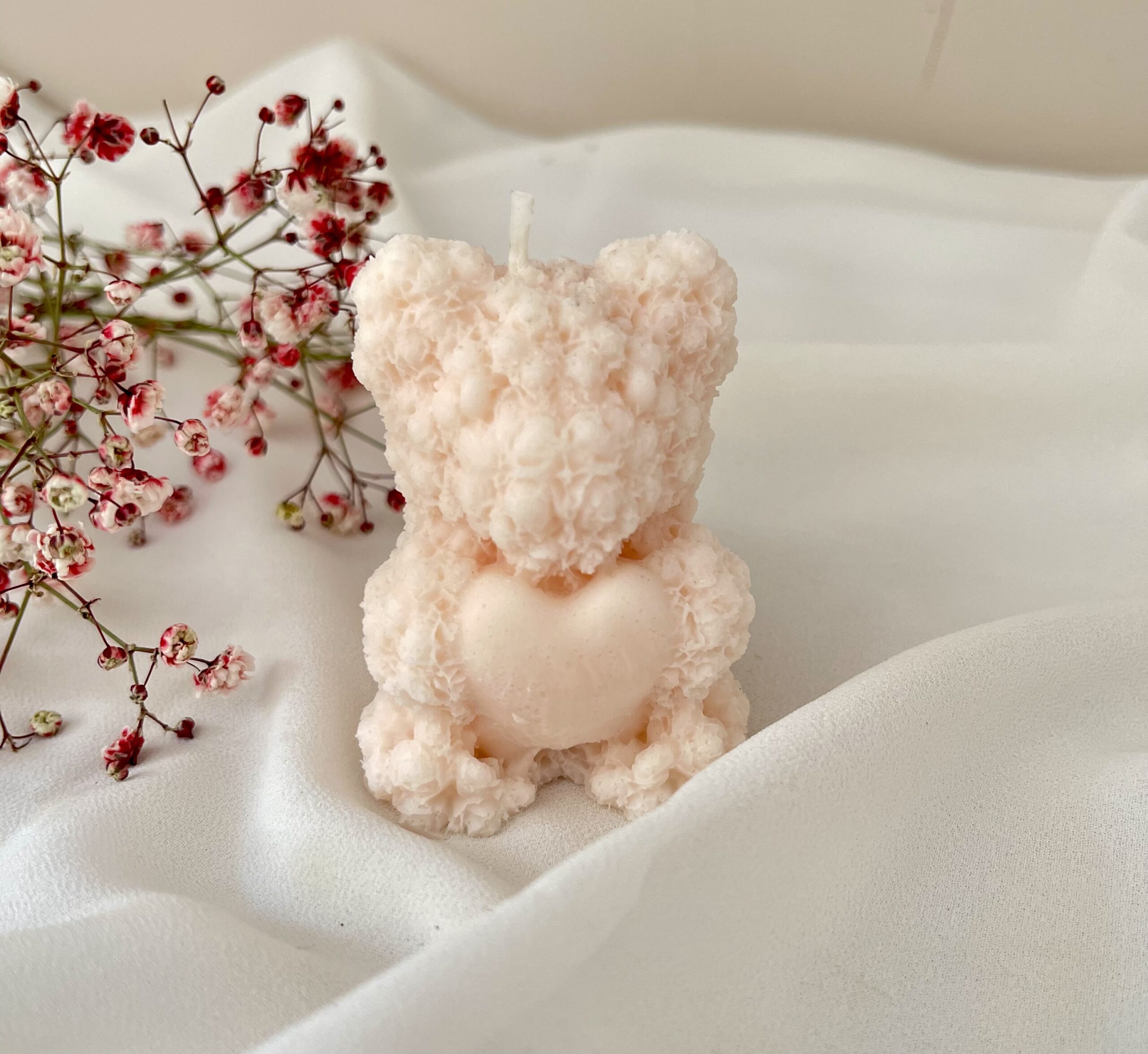 Ręcznie wykonana świeca z naturalnego wosku sojowego w kształcie uroczego misia trzymającego serduszko. Ten wyjątkowy drobiazg zachwyca nie tylko zapachem, ale także swoim pełnym ciepła wyglądem – idealny, by wywołać uśmiech.