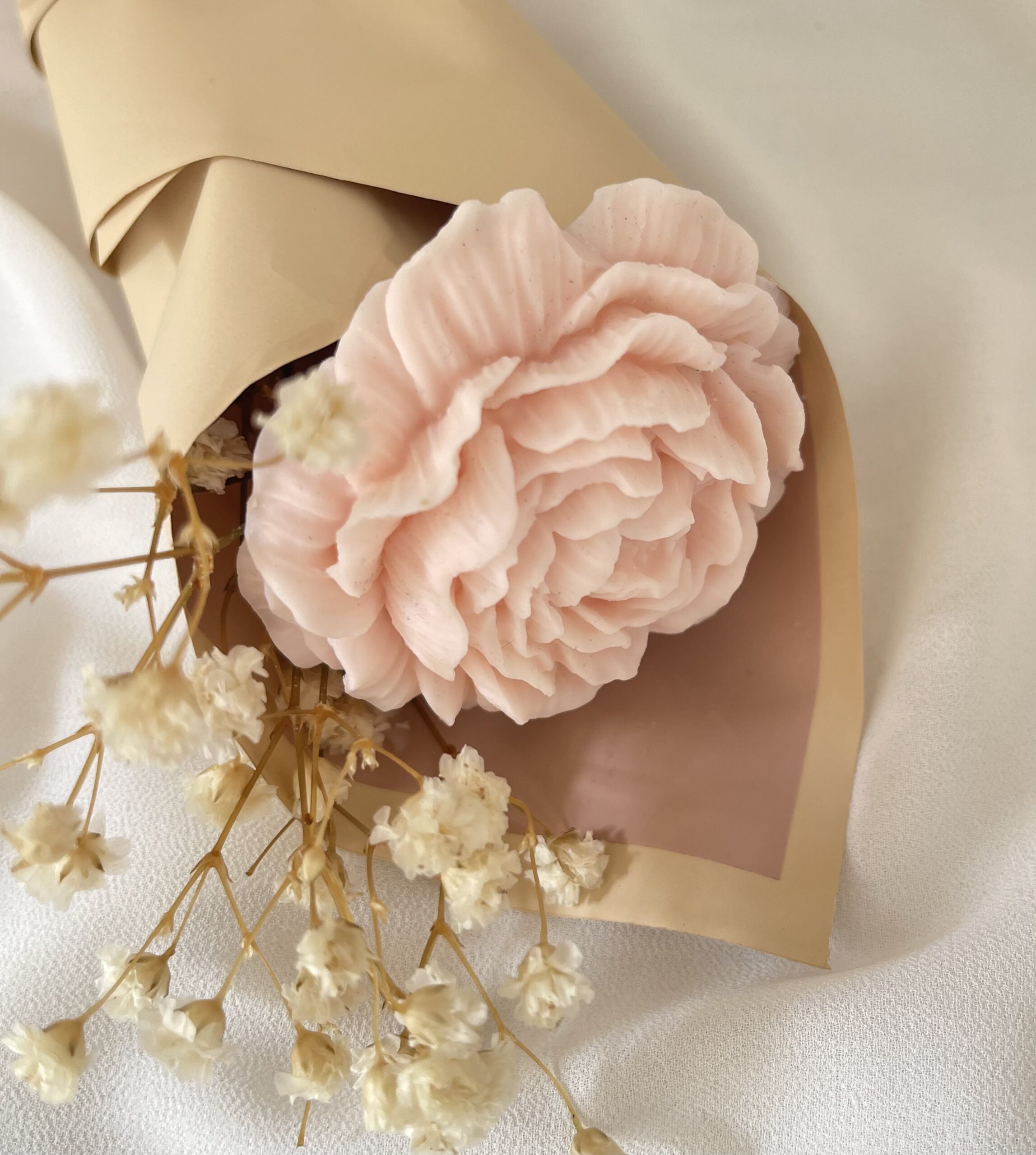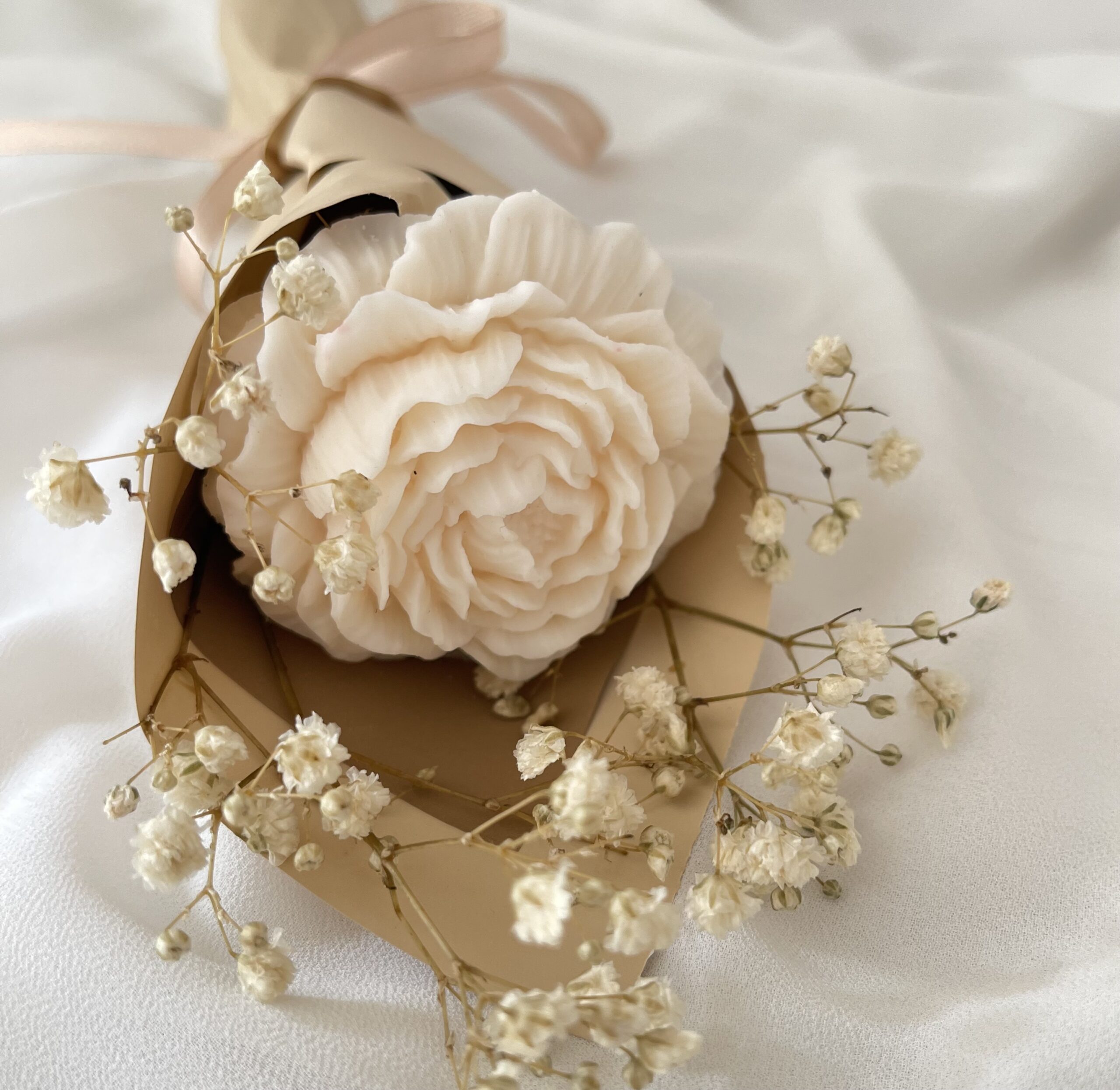 Wyjątkowa świeca wykonana ręcznie z naturalnego wosku sojowego, uformowana w kształt piwonii. Każdy egzemplarz to mała, pachnąca rzeźba – zdobiona suszonymi kwiatami, które dodają jej uroku i naturalnego wdzięku. Idealna na prezent, jako symbol wdzięczności lub wyjątkowy dodatek do domowej dekoracji.